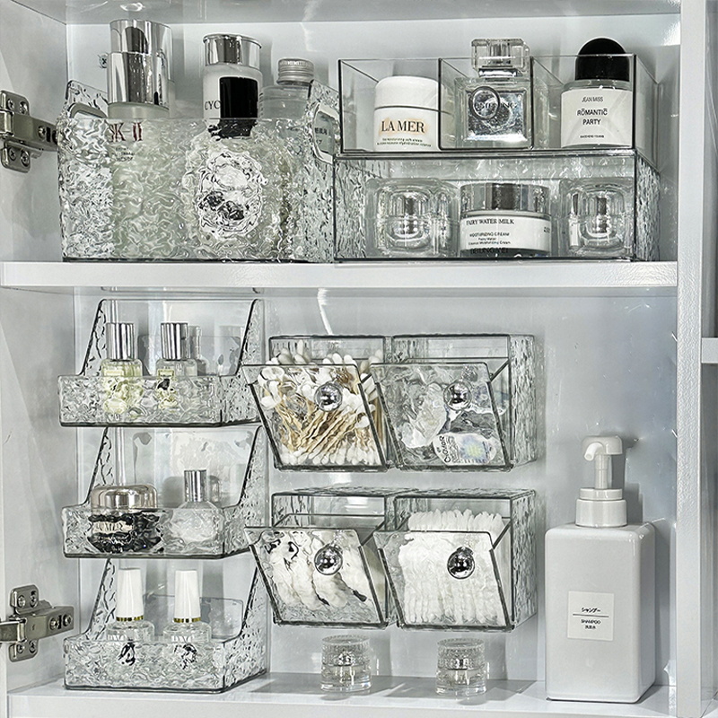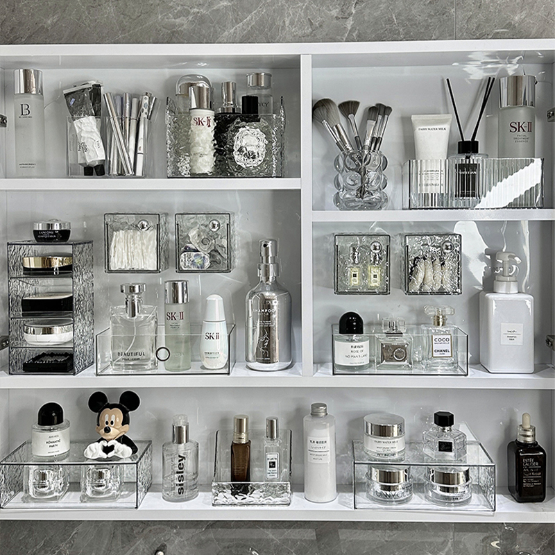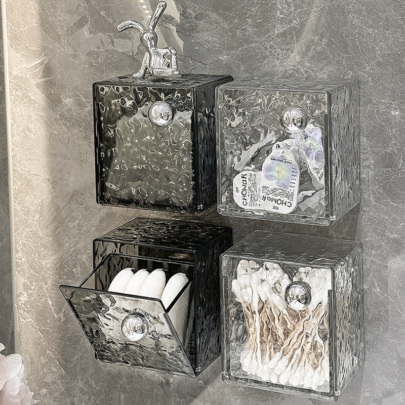 卫生间镜柜里收纳盒化妆棉洗脸巾整理盒壁挂透明棉签盒口红置物架