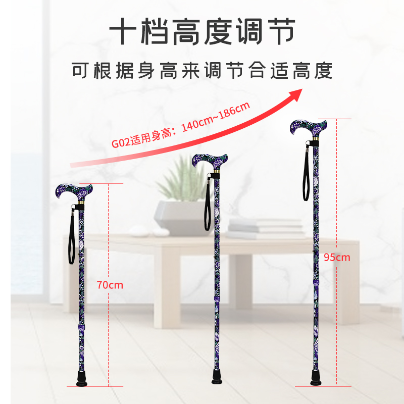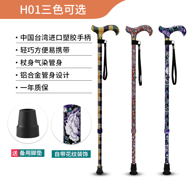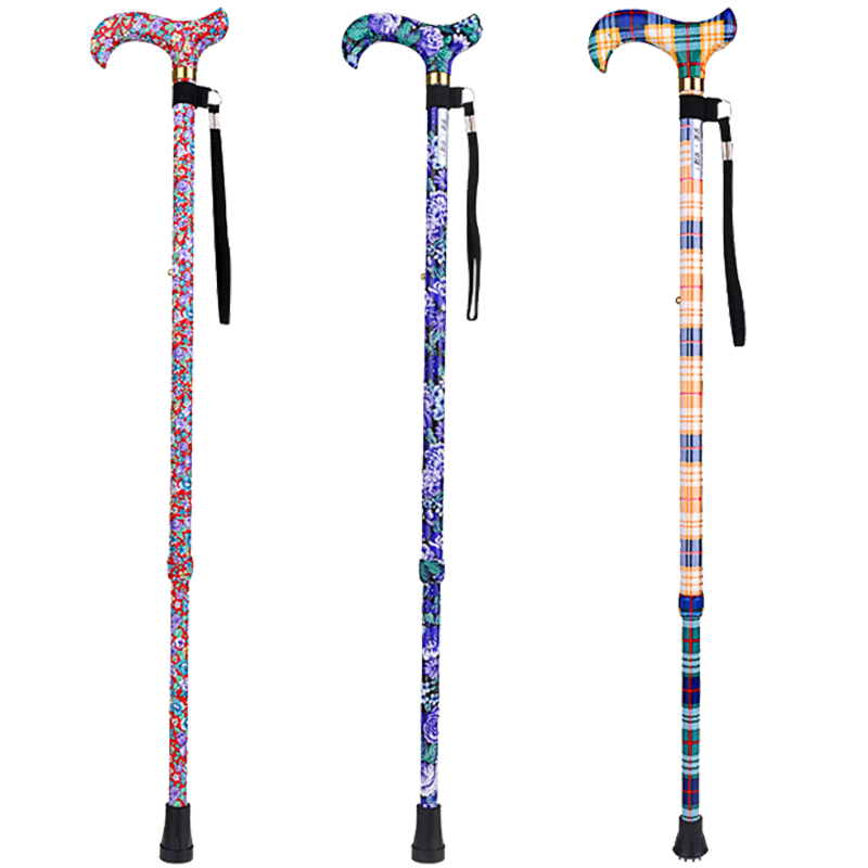 乐来福进口老人拐杖铝合金伸缩手杖复古印花登山杖便携助行拐杖