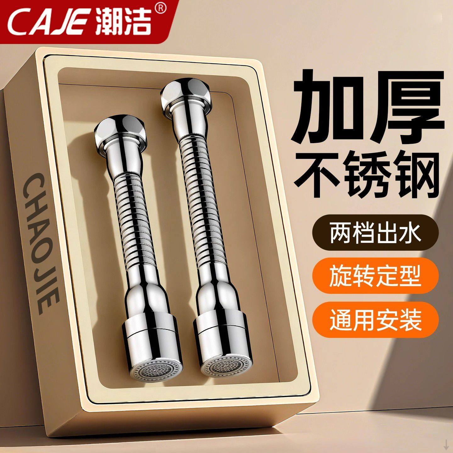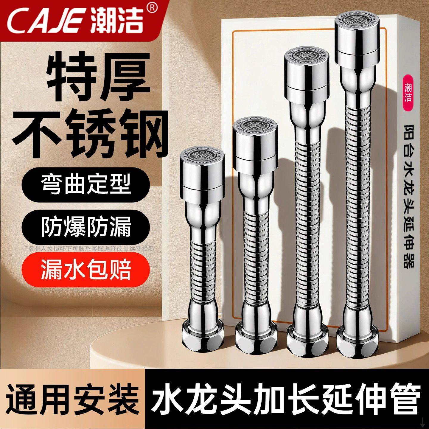 潮洁德国不锈钢延长管龙头水嘴接头加长水管延伸器万向旋转防溅器