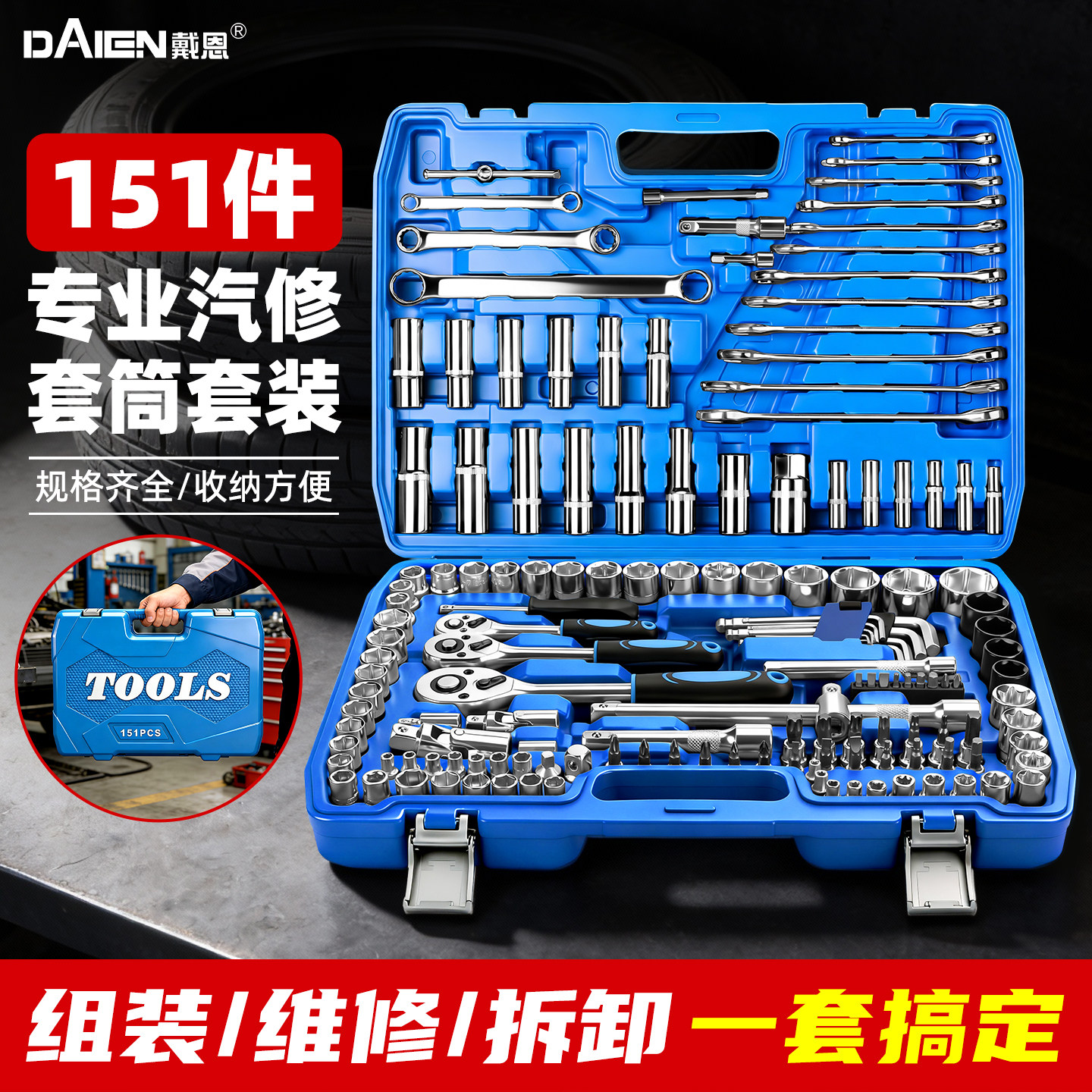 汽修工具套装棘轮扳手套筒组合汽车维修工具箱多功能小飞修车全套