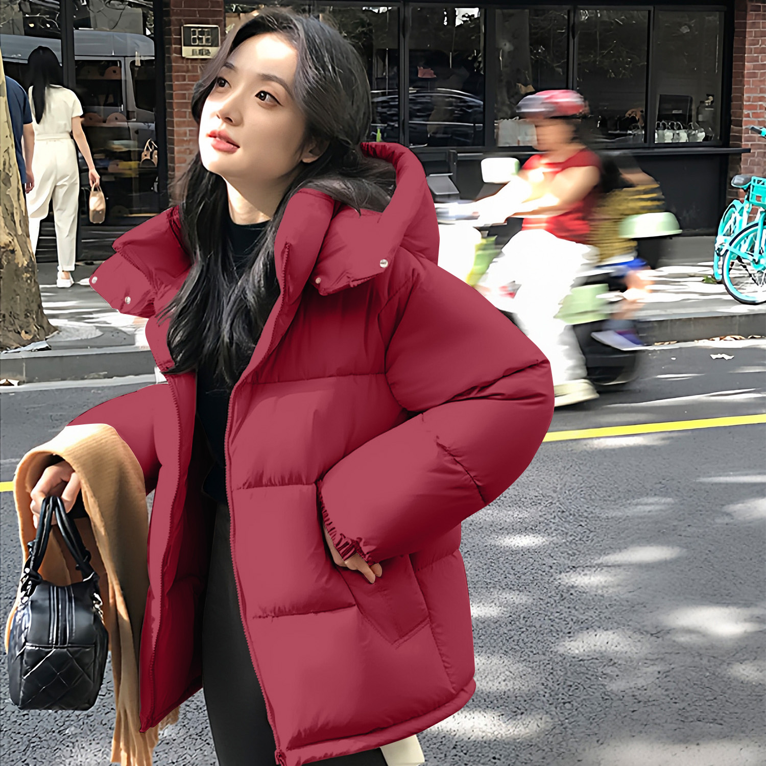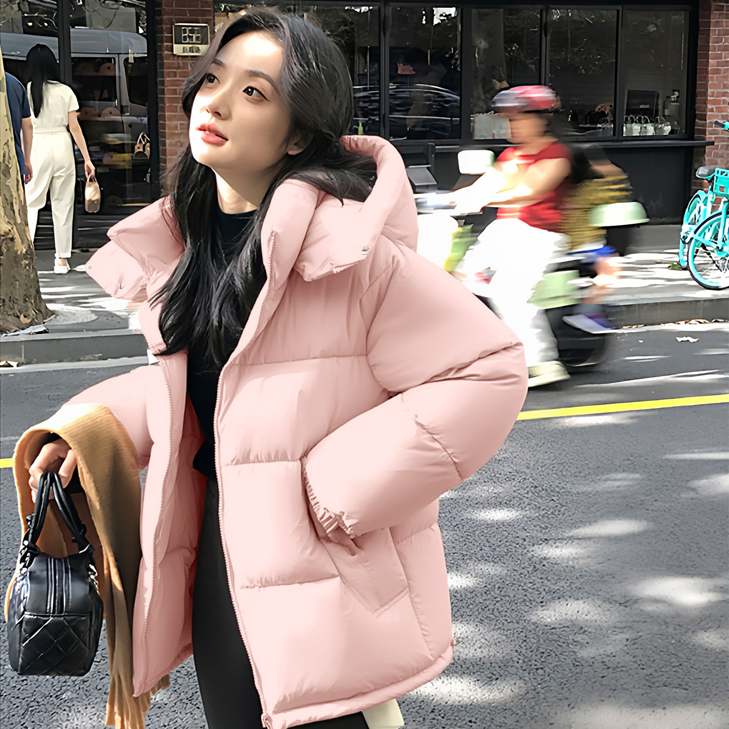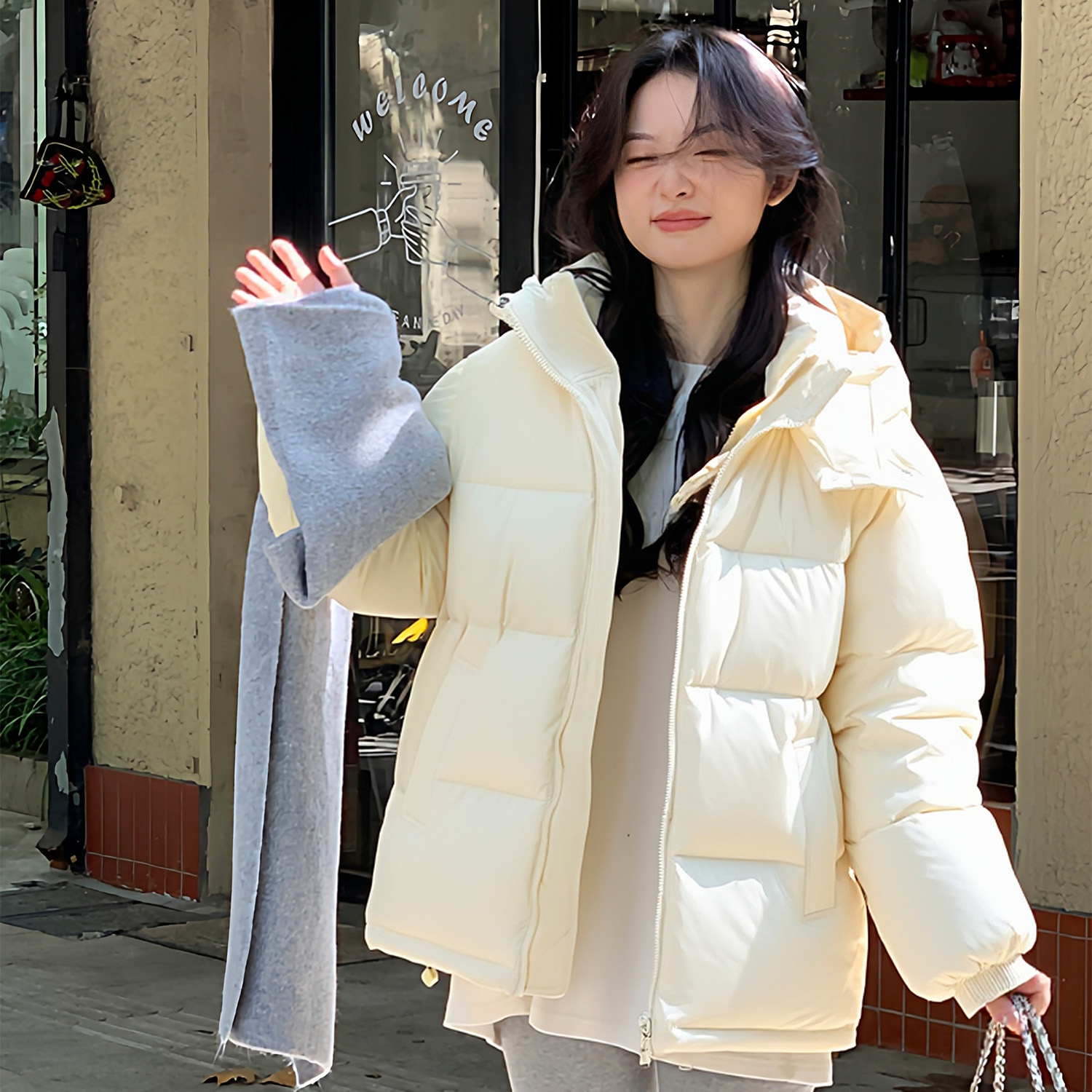 KMV真维斯黑色连帽棉袄加厚棉服外套女冬季2025新款独特大码棉衣