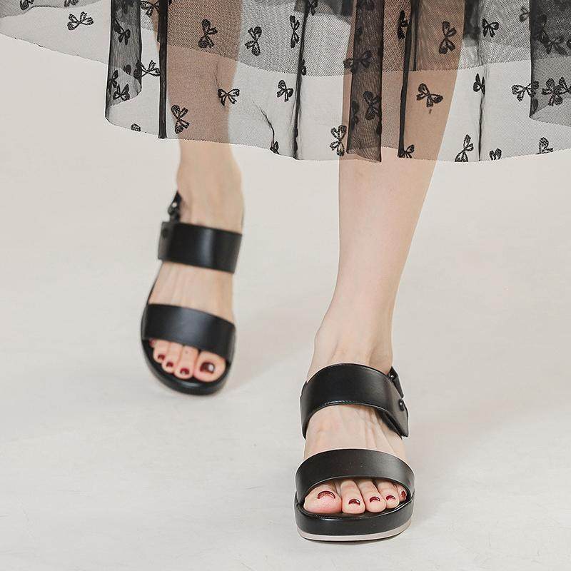 一字带坡跟凉鞋女夏2026夏季新款休闲舒适软底露趾增高厚底罗马鞋