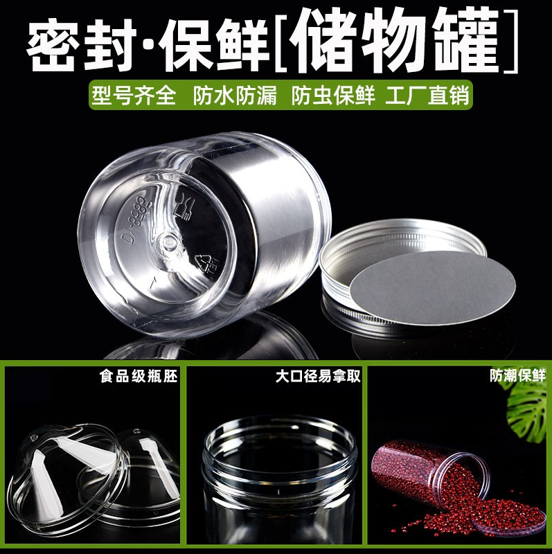 密封罐食品级带盖透明罐子圆形pet空瓶子蜂蜜饼干加厚包装塑料瓶