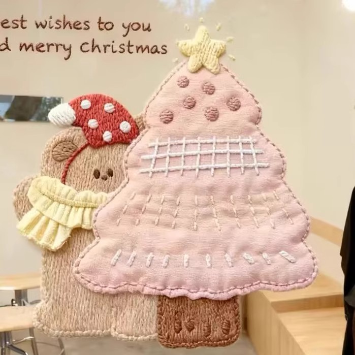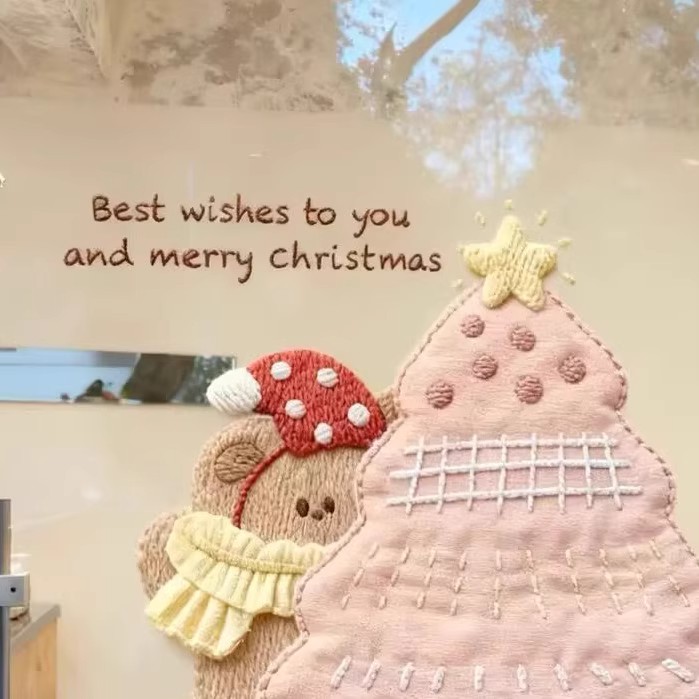 布艺小熊圣诞树奶茶店玻璃门静电贴橱窗贴纸美化装饰贴膜节日用品