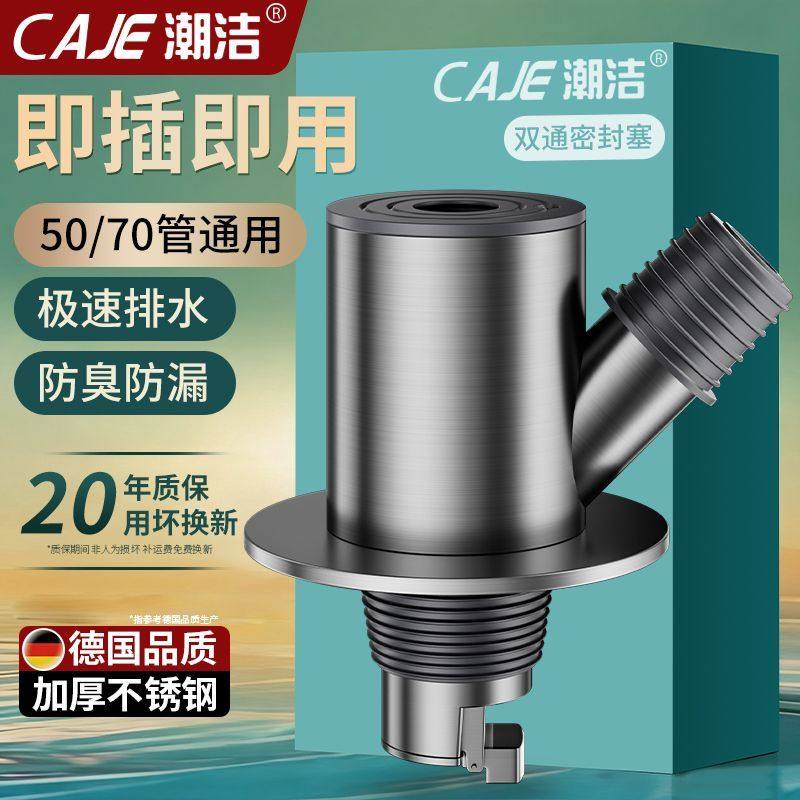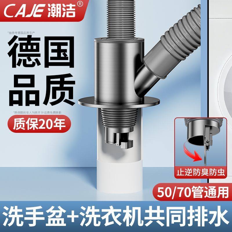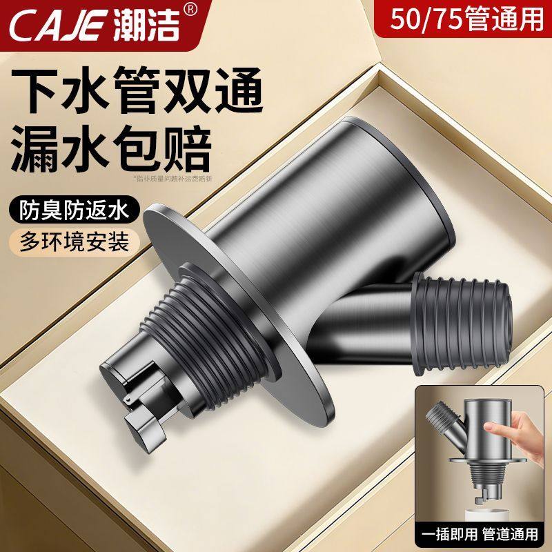 潮洁洗衣机下水三通排水管阳台二合一防溢水防返臭神器三头通接头