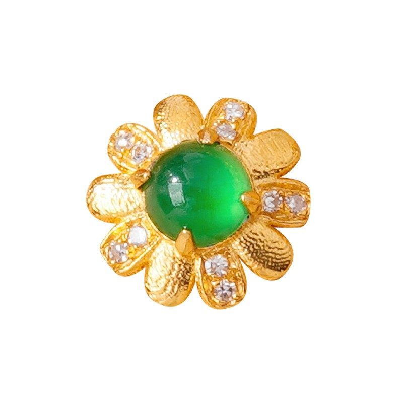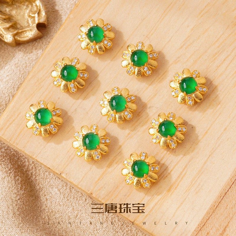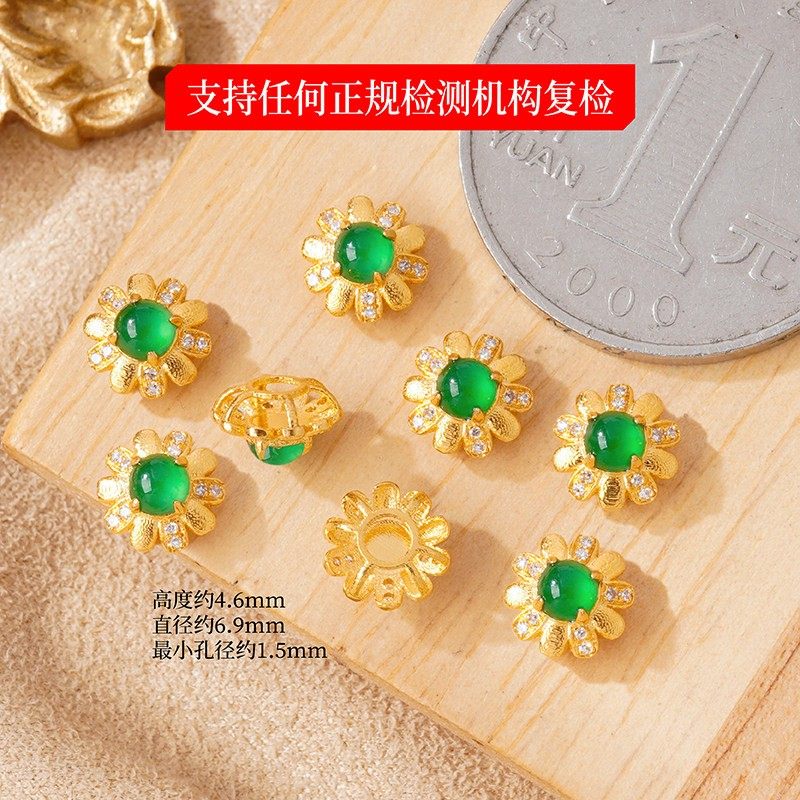 18k金配件diy镶钻石翡翠小菊花隔珠手工手链手串珠宝配饰顶珠背云