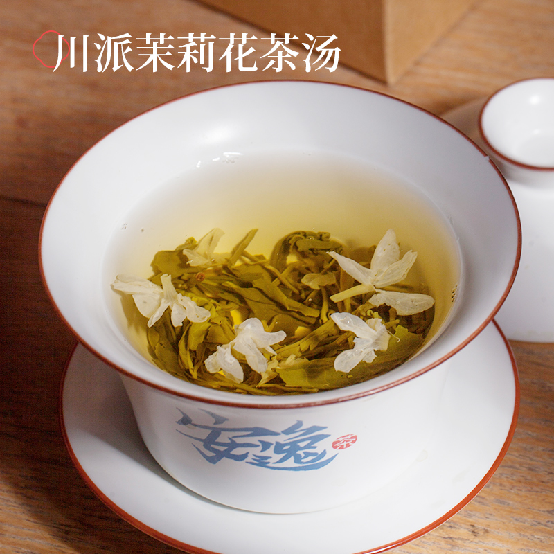 子乐宅成都盖碗茶 茉莉花茶+盖碗茶杯组合套装 四川特色茶叶礼盒