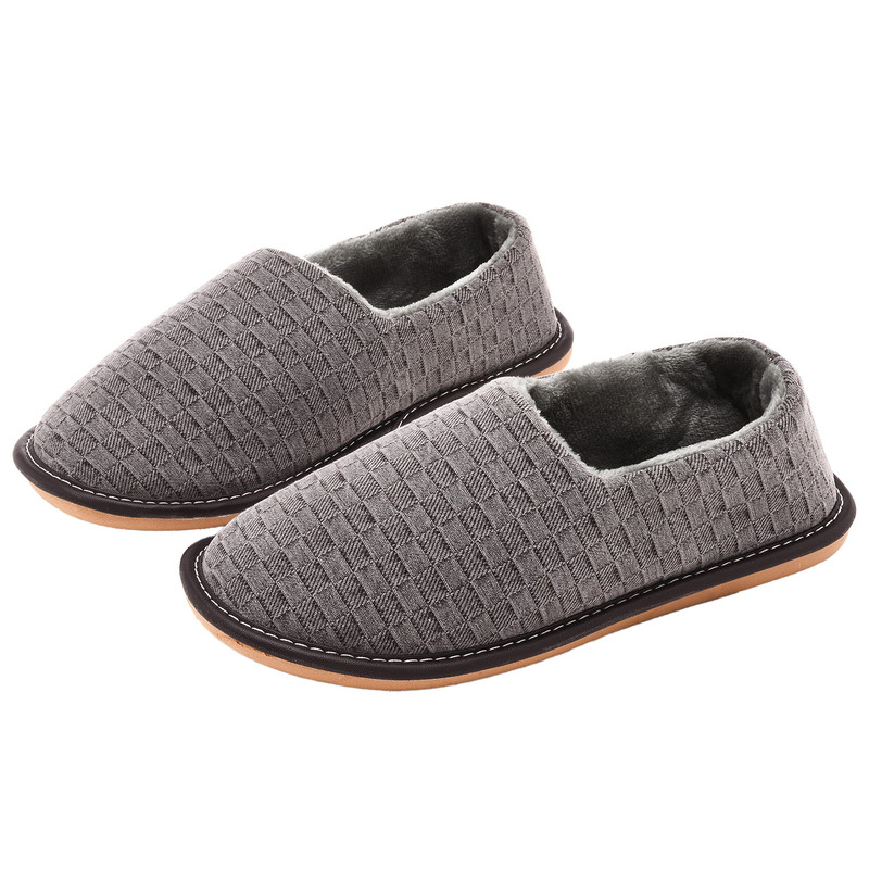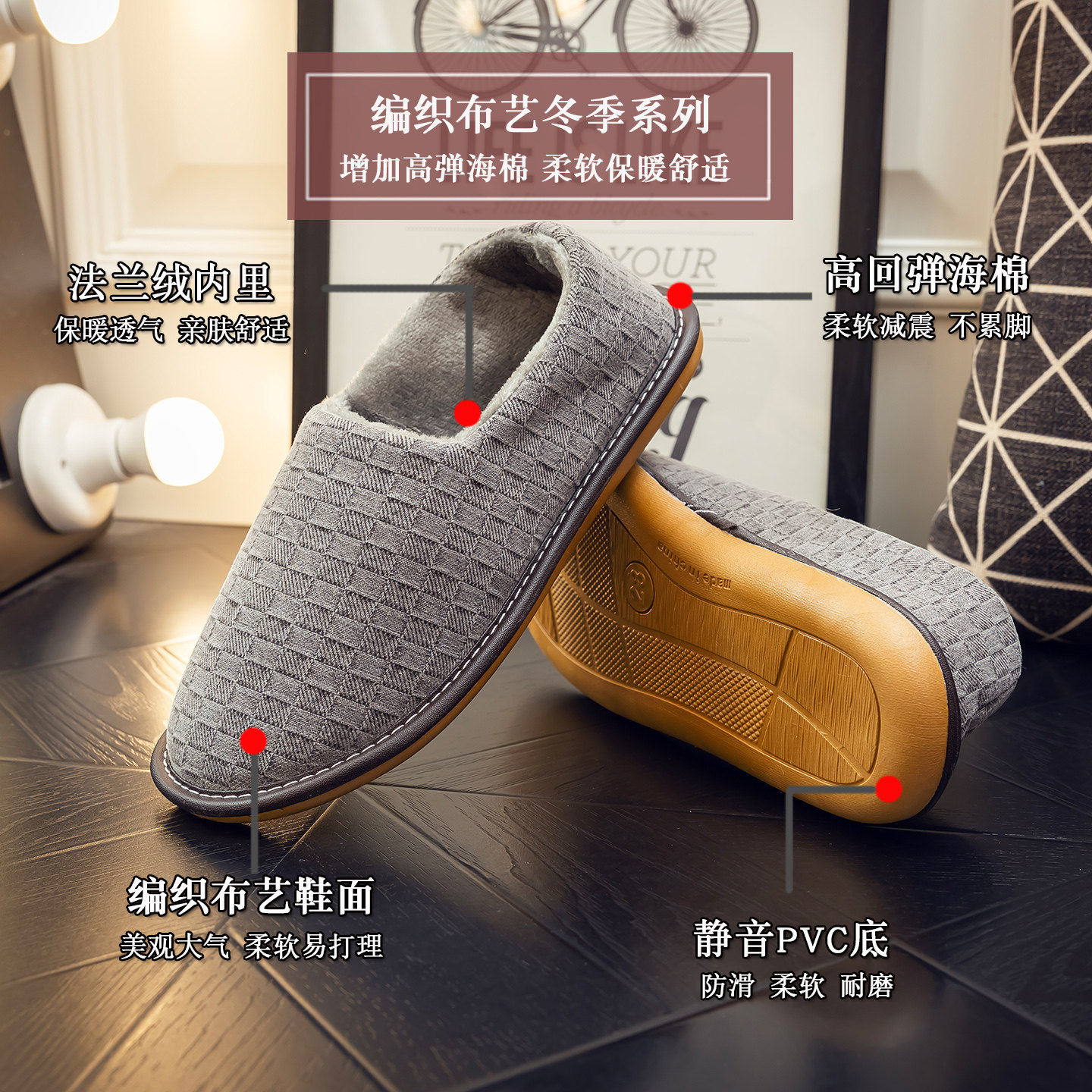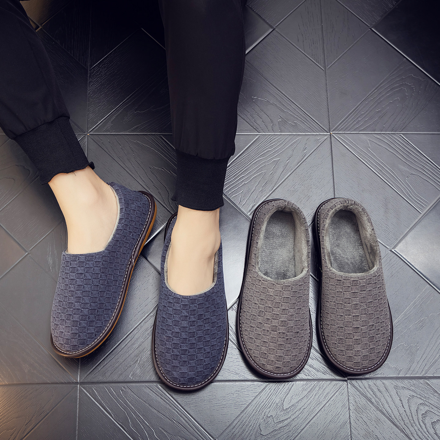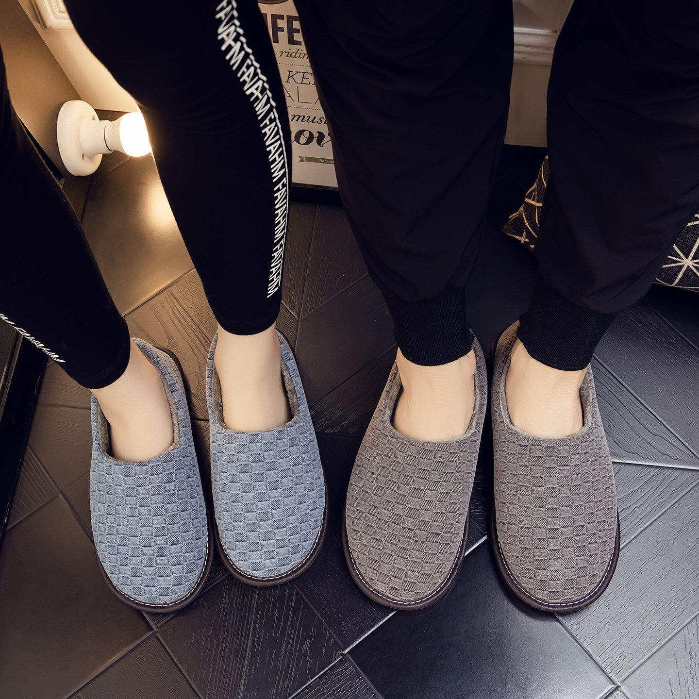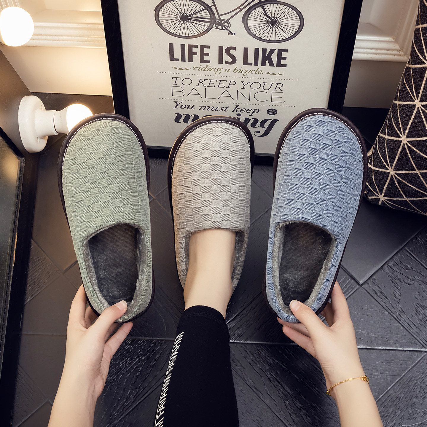 格子布艺包跟棉拖鞋男女情侣居家室内防滑软底静音加绒保暖棉鞋冬