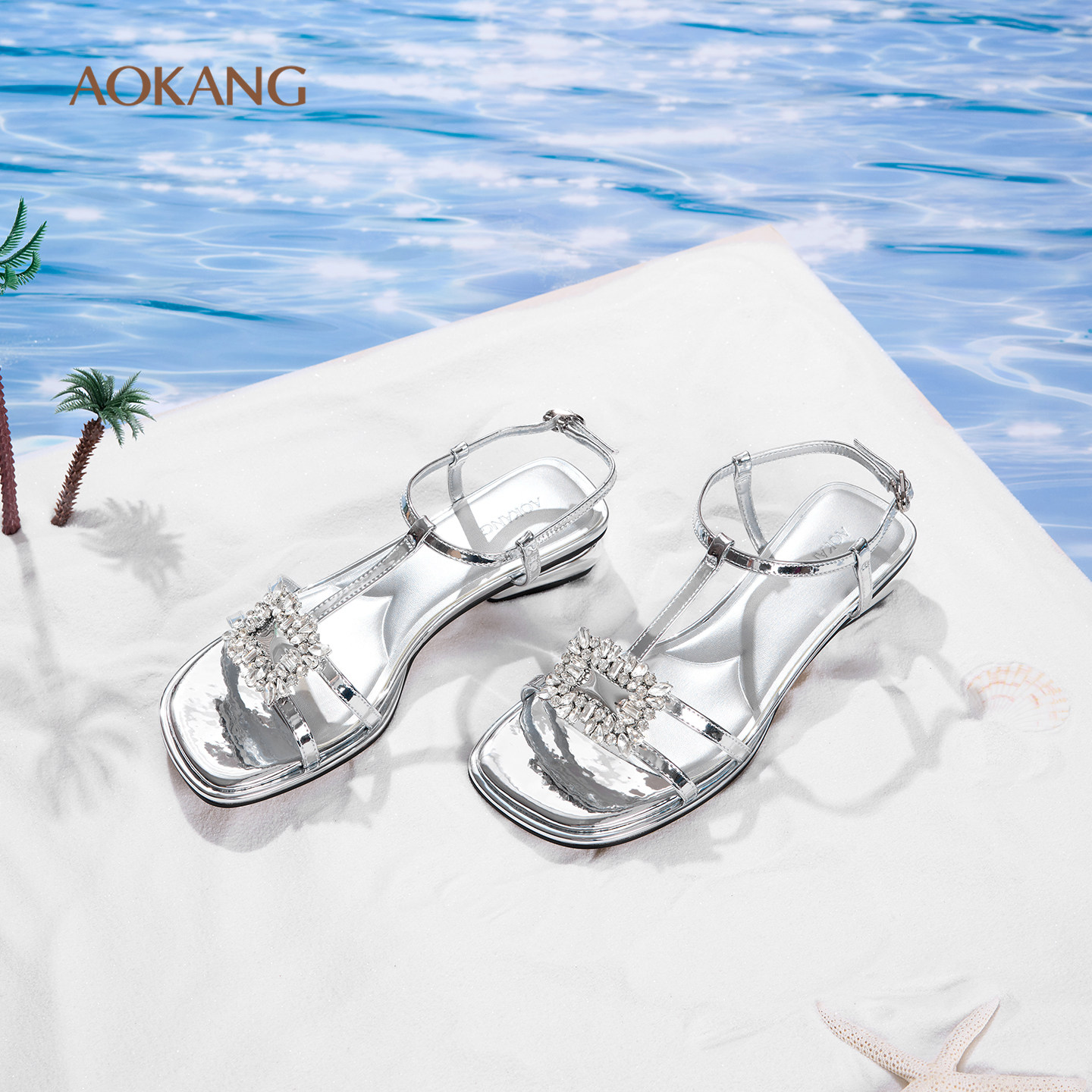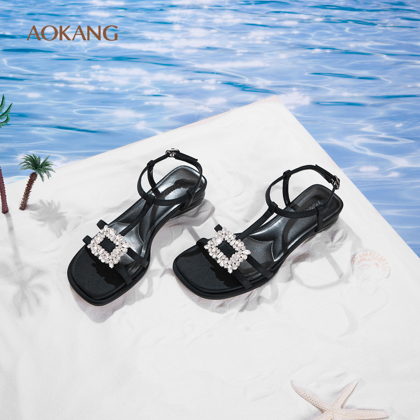 奥康 女鞋2025夏季时装凉鞋方头高级感中后空通勤配裙凉拖