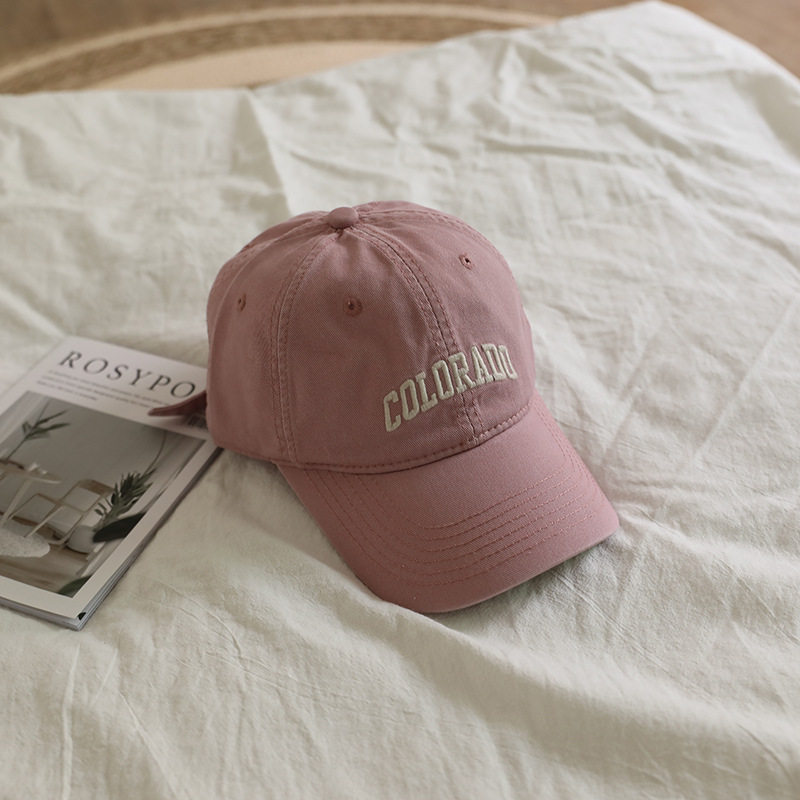 colorado字母刺绣棒球帽女粉色弯檐显脸小休闲百搭情侣鸭舌帽子男