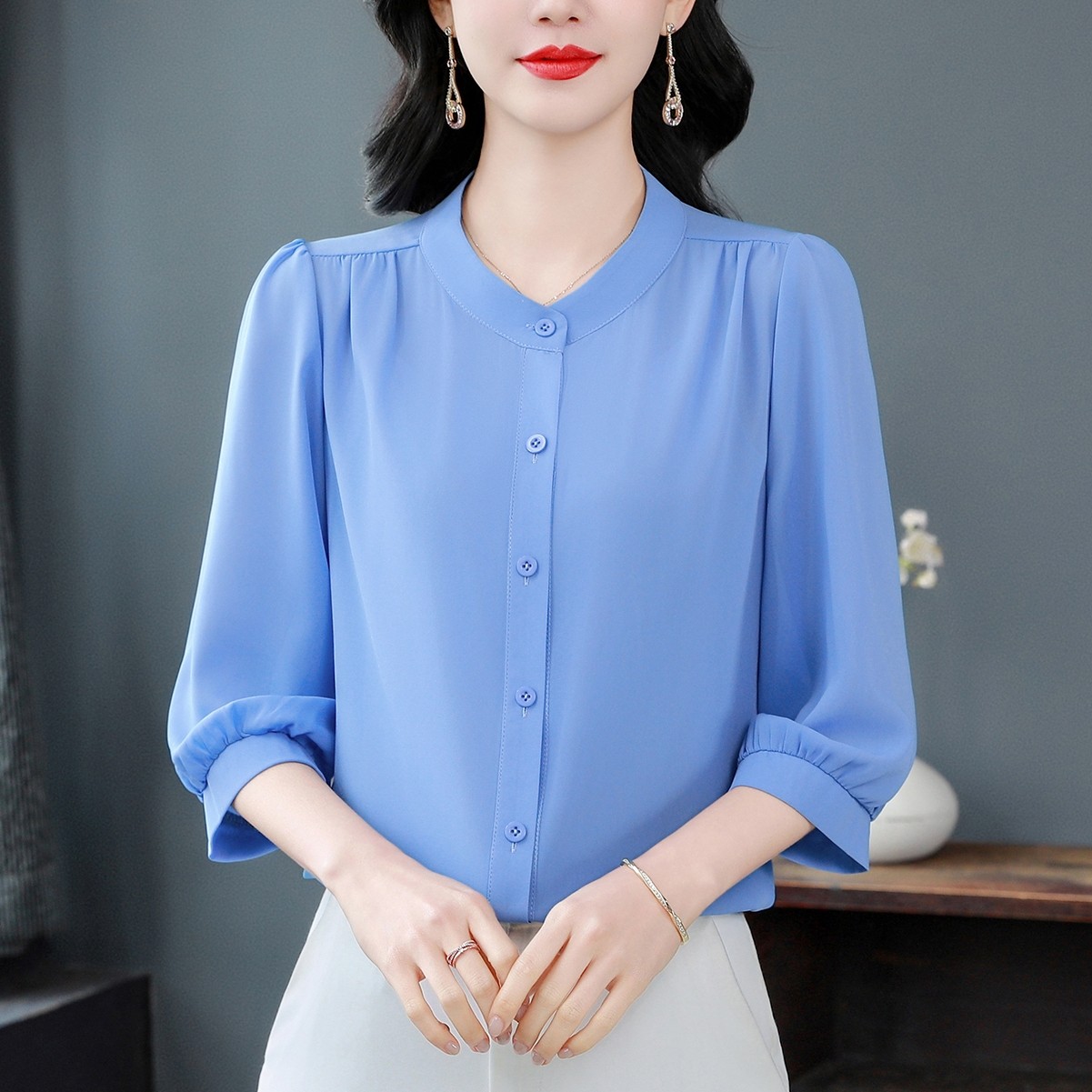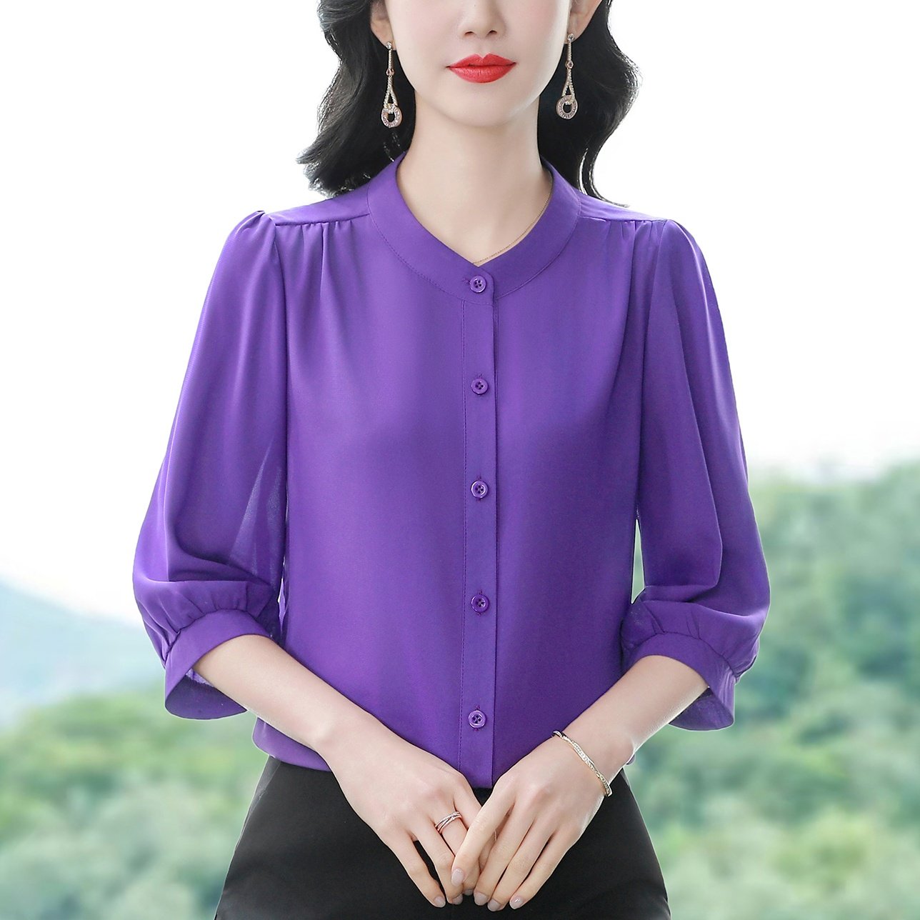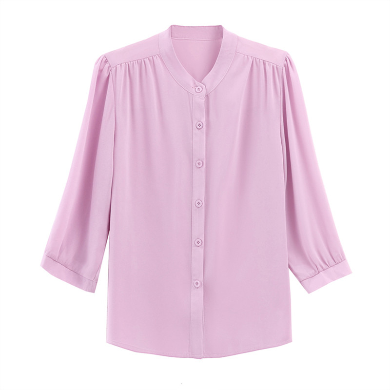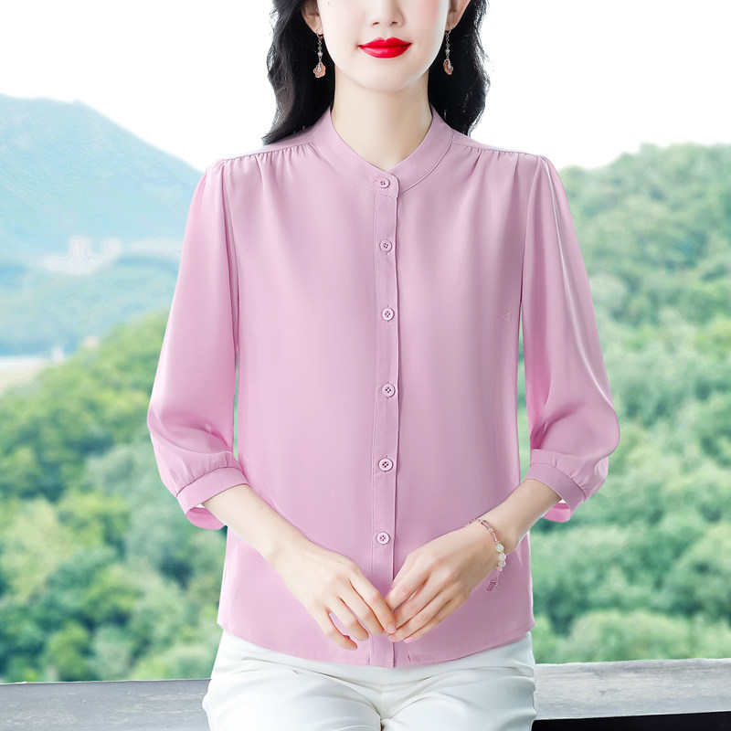 真丝衬衫女士中袖桑蚕丝上衣夏装宽松遮肉百搭休闲妈妈七分袖衬衣