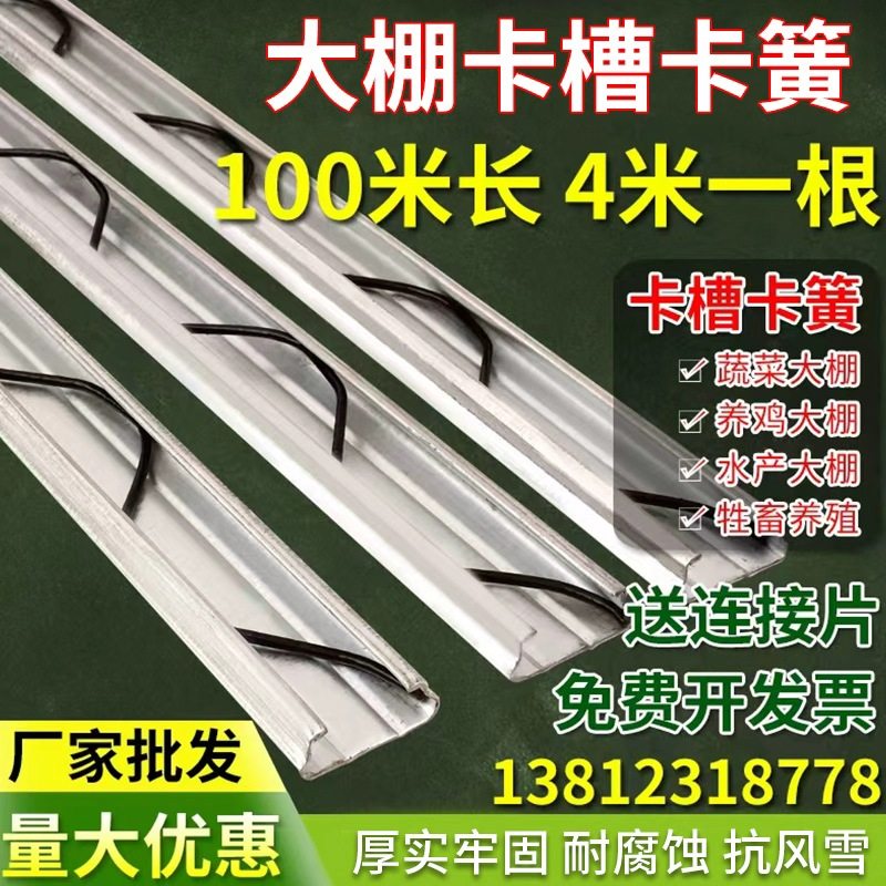 大棚卡槽卡簧配件大全防风热镀锌压膜槽铝合金卡膜槽卡条压条卡扣