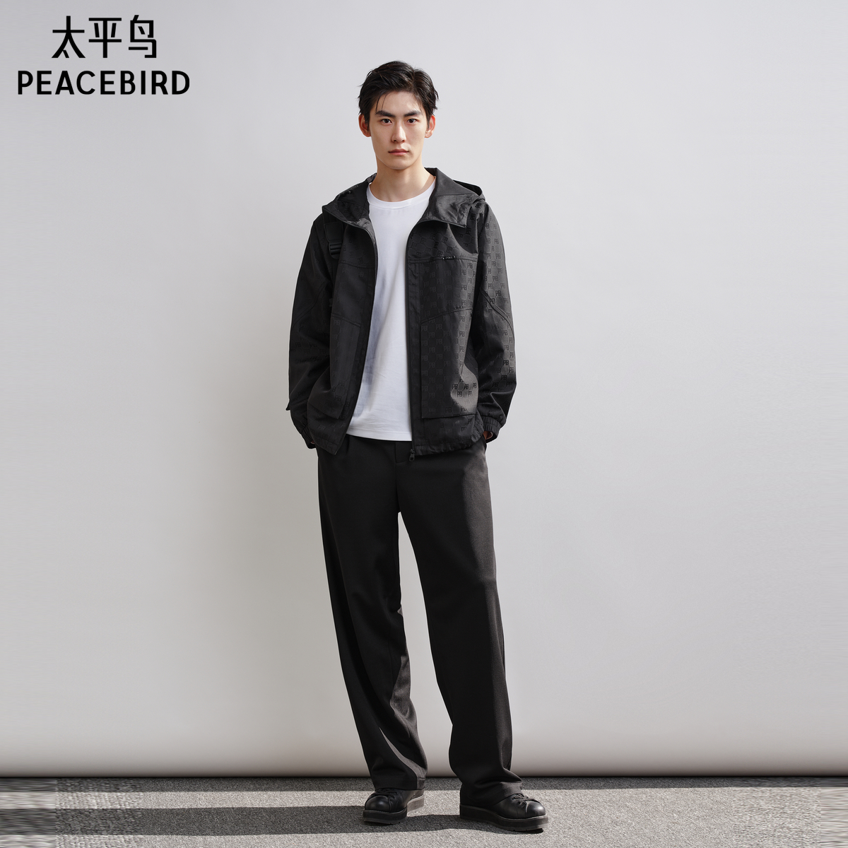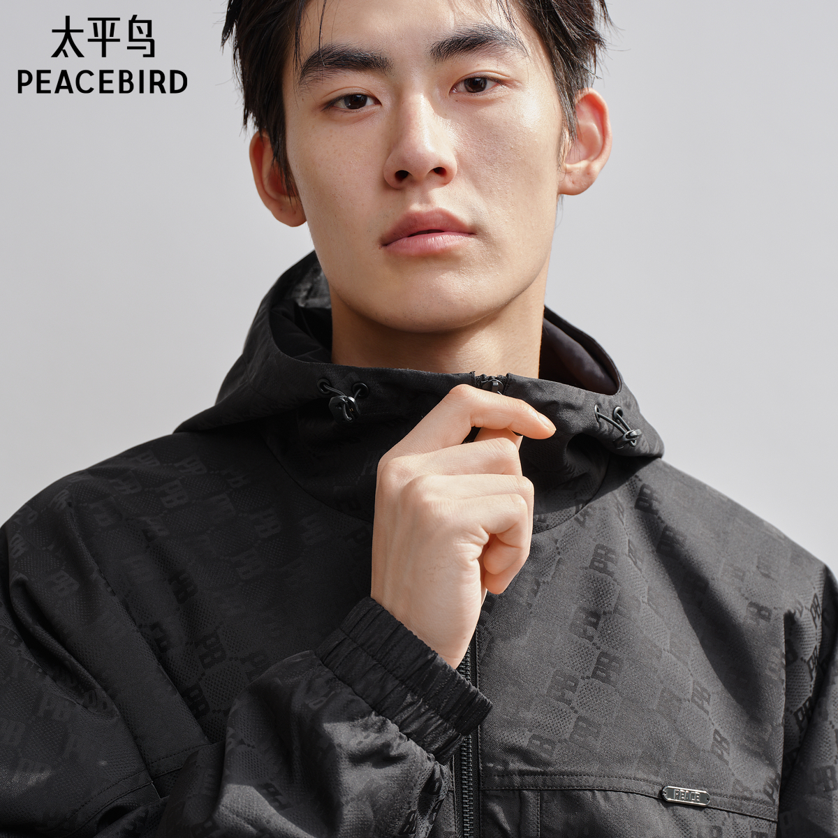 太平鸟男装暗纹提花连帽夹克2025秋新款户外休闲钓鱼服时尚茄克