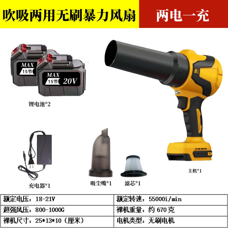 桐岛无刷暴力风扇强力吹风机涡轮涵道吹吸除尘吹水吹雪手持暴风枪