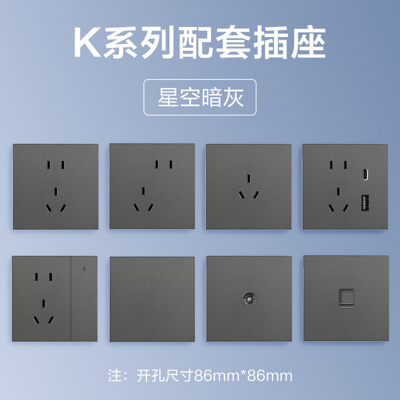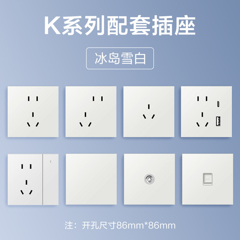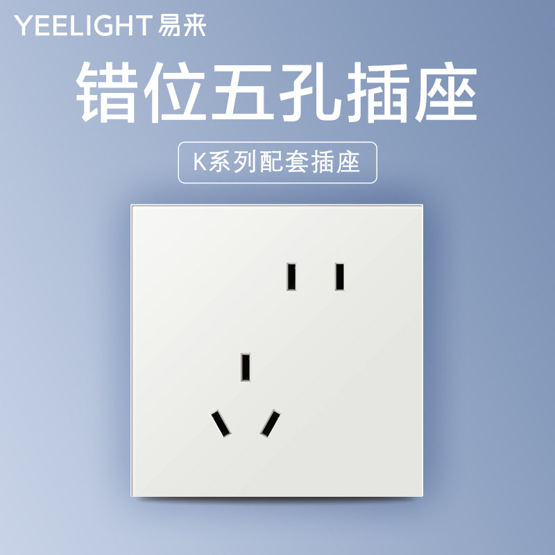 Yeelight易来K系列86盒插座10A空调网线五孔控制面板错位三孔K1