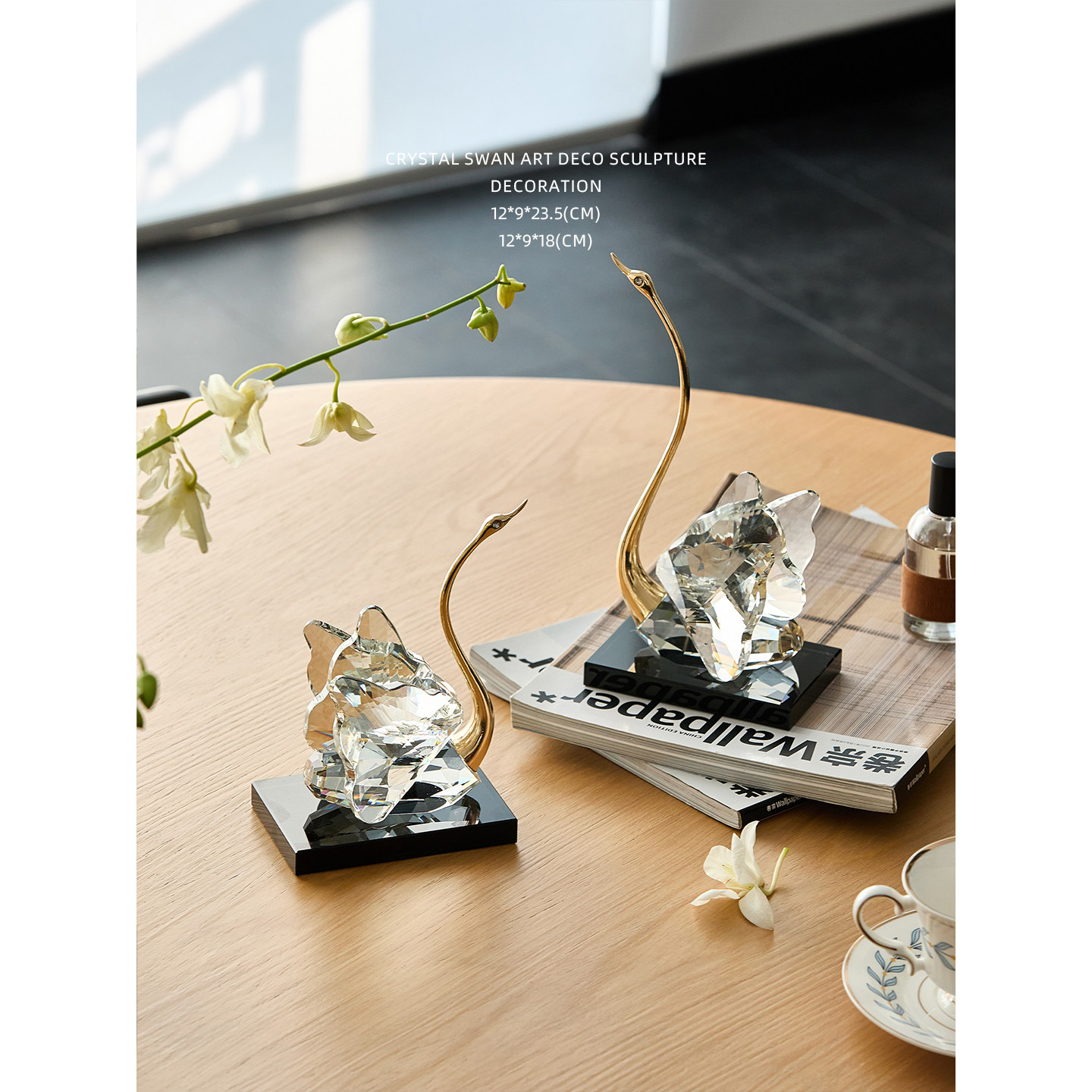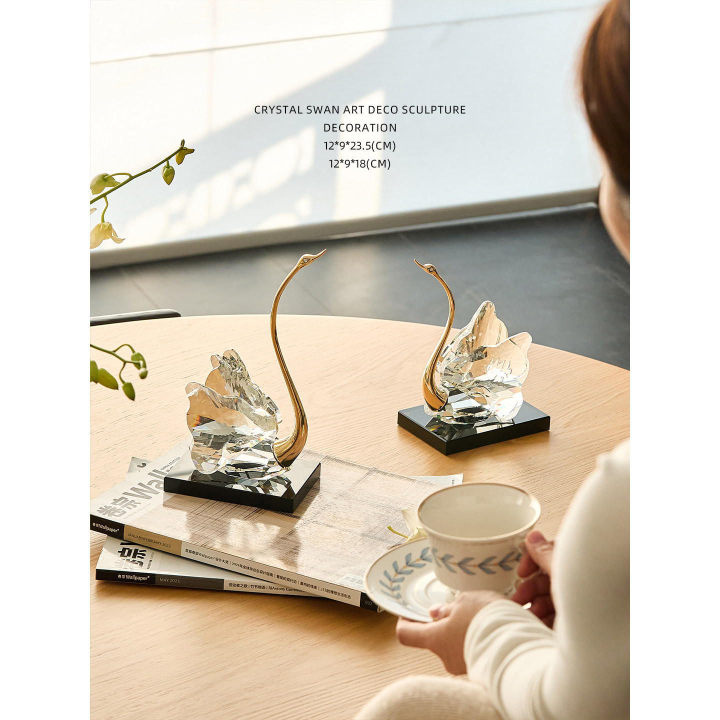 迷屿 轻奢新居客厅电视柜水晶天鹅一对摆件装饰品结婚订婚纪念品