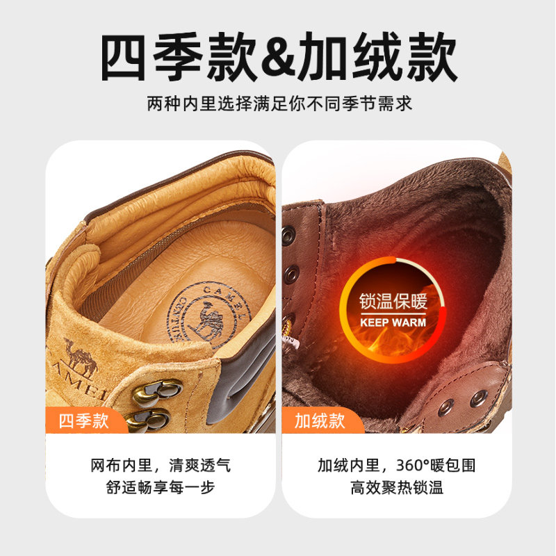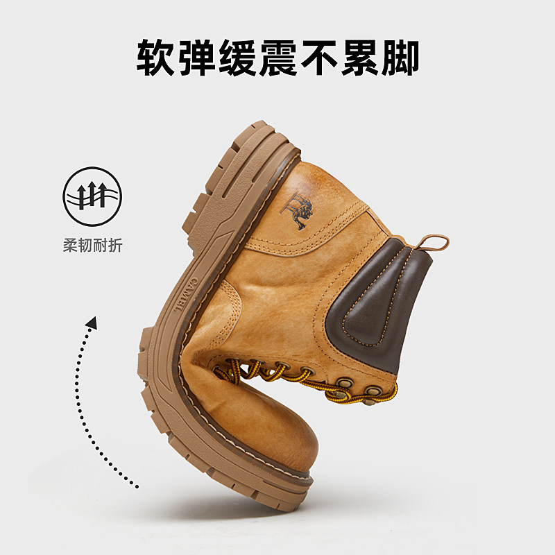 【骆驼铠甲】男鞋复古休闲时装靴耐磨厚底增高户外工装男士大黄靴