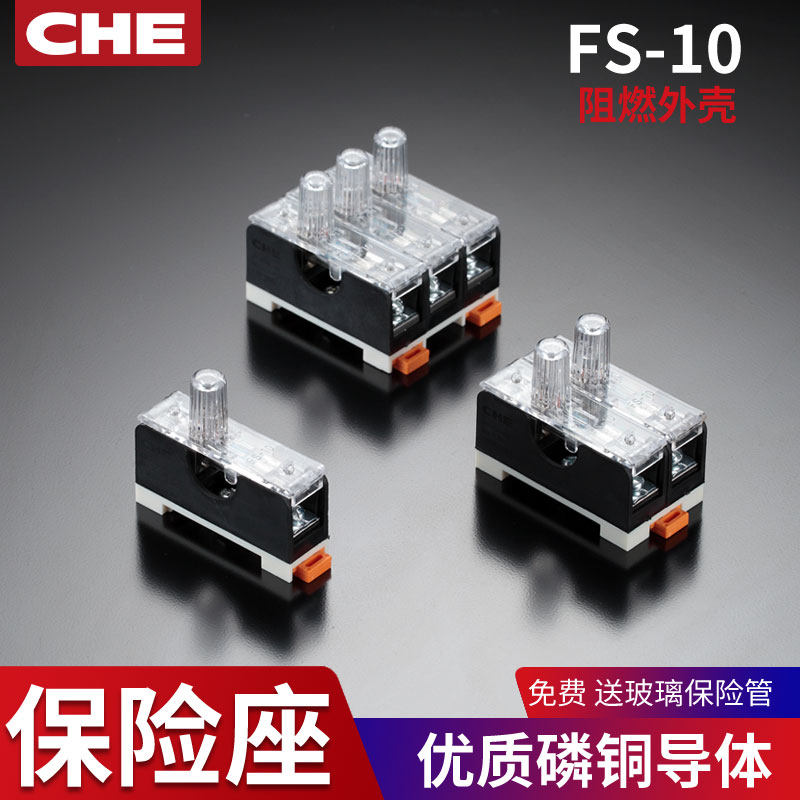 FS-101低压熔断器座底座盒阻燃卡轨CHE保险座10A带灯玻璃保险丝座