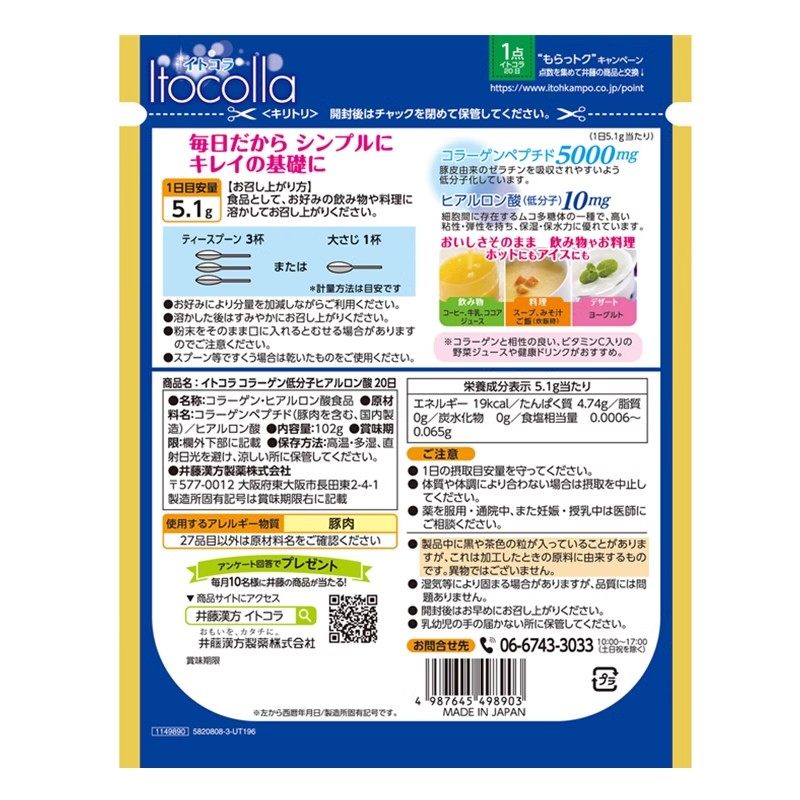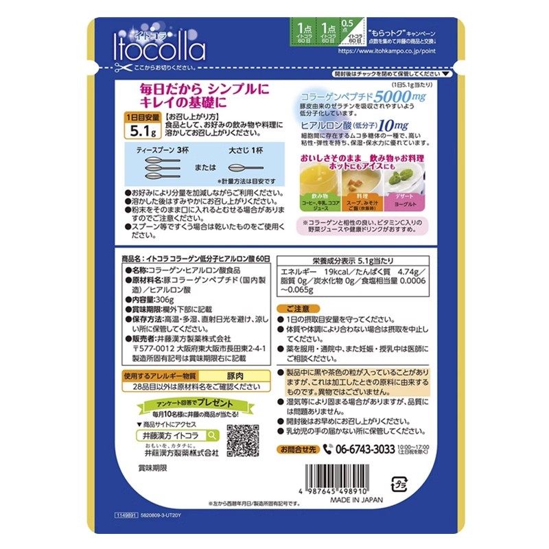 日本代购井藤汉方ITOH低分子透明质酸+胶原蛋白肽+玻尿酸306g正品