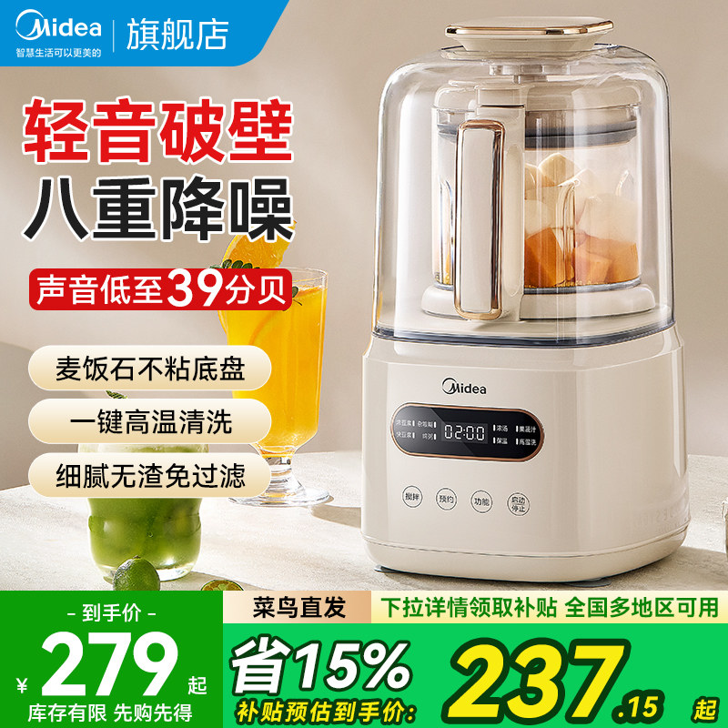 美的破壁机家用隔音罩新款豆浆机多功能料理机榨汁机官方旗舰店静