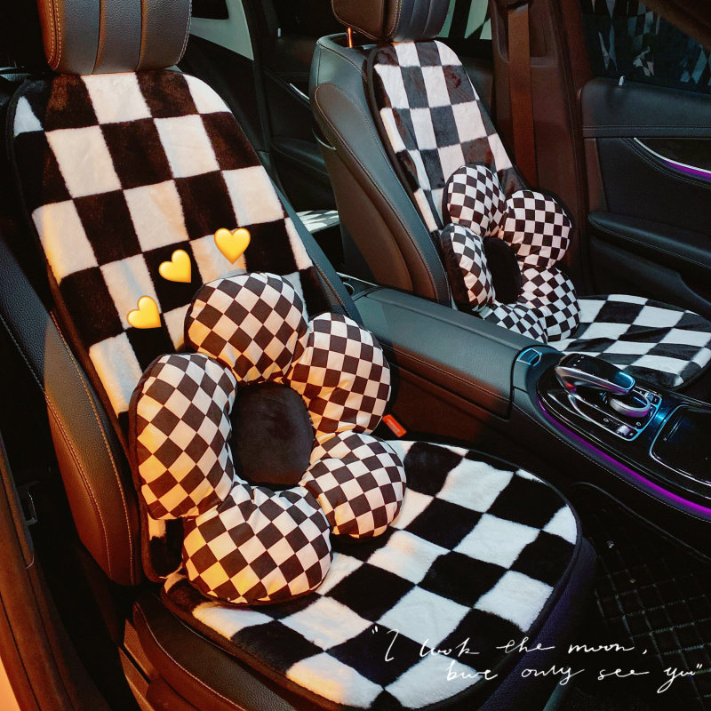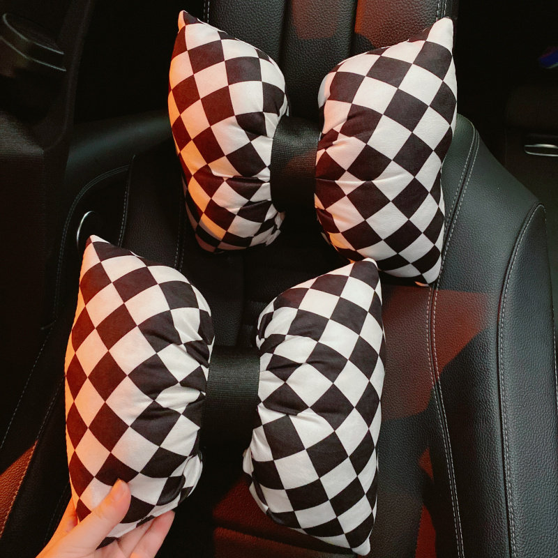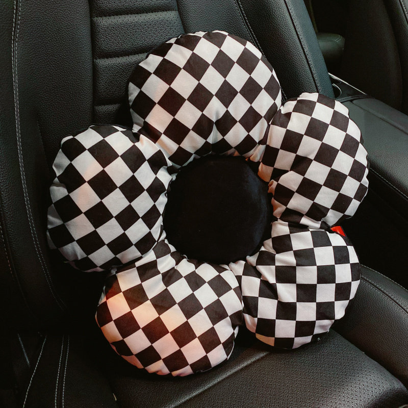 汽车腰靠抱枕车载座椅腰部支撑靠背腰垫创意棋盘格颈枕坐垫车用品