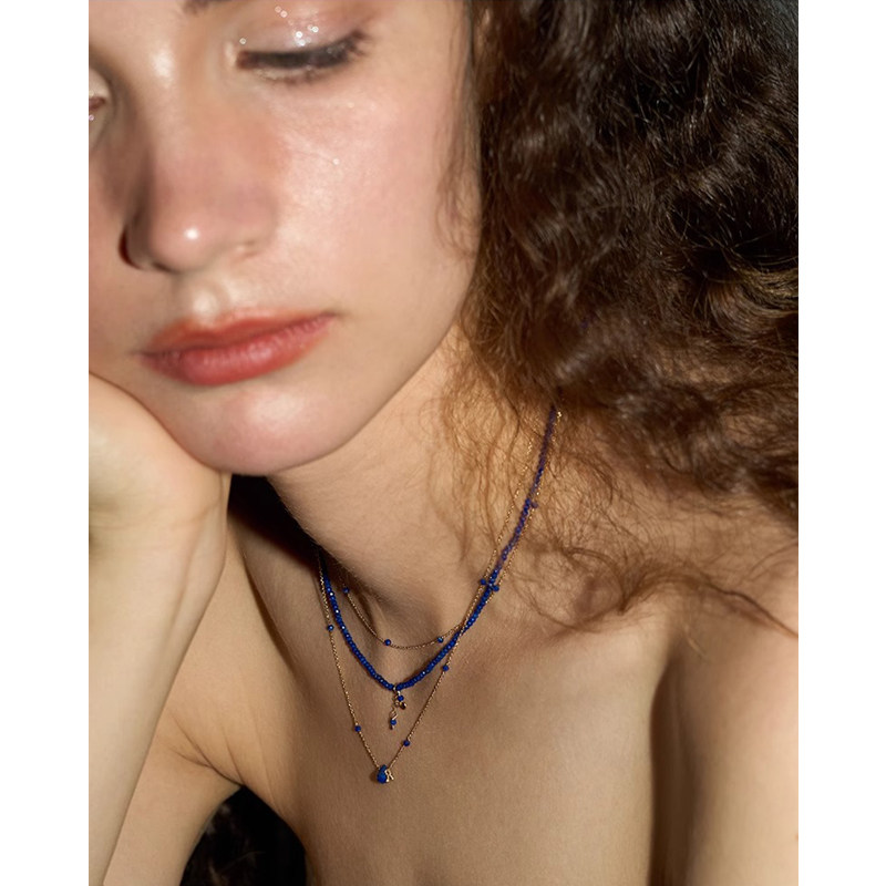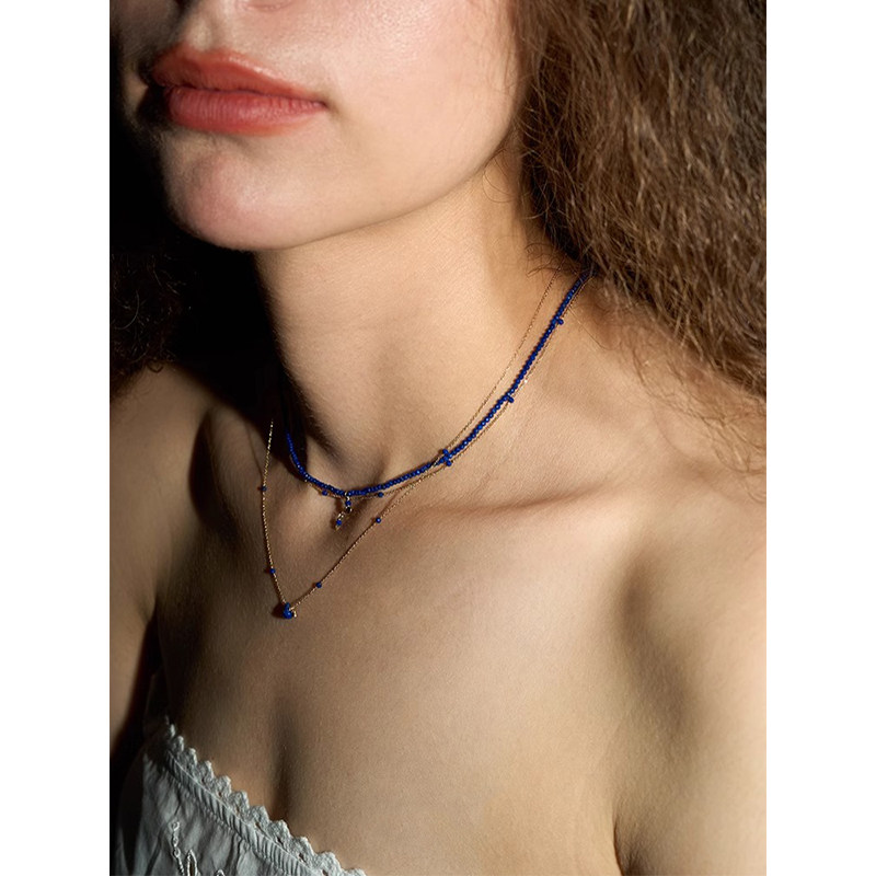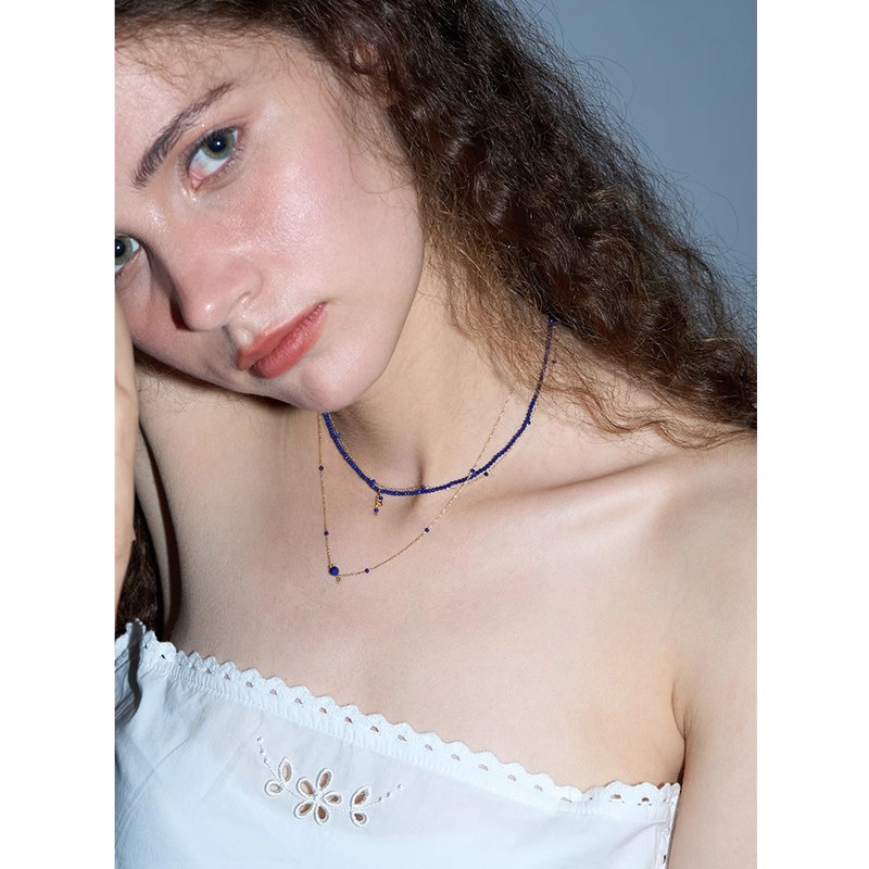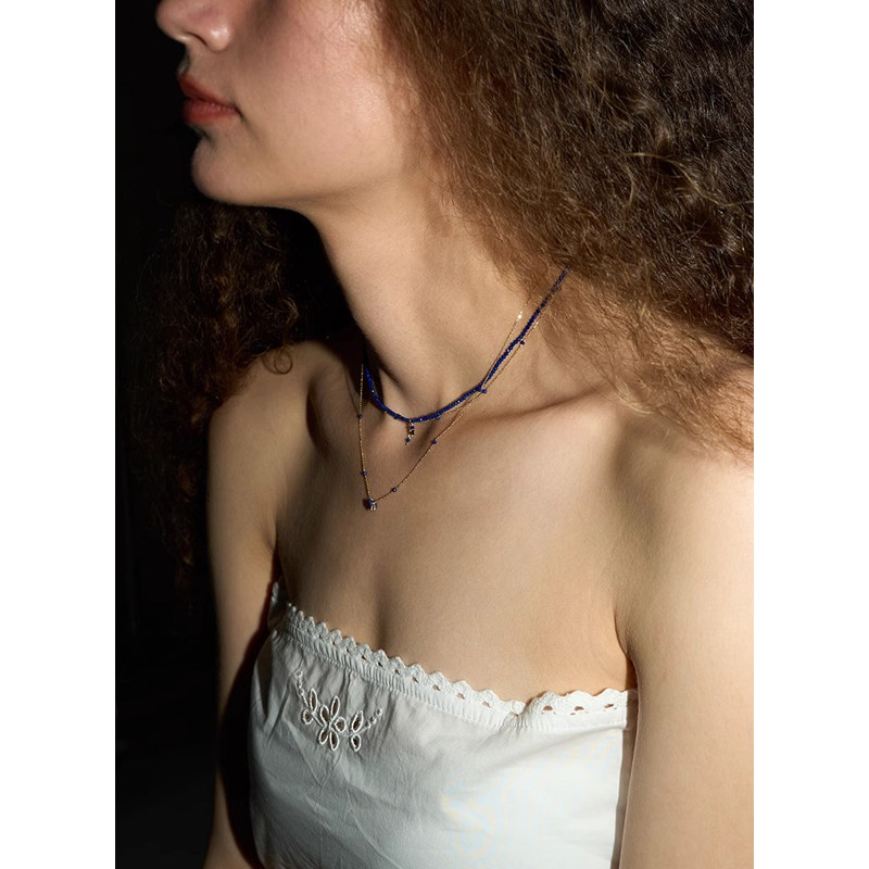 手工房全蓝青金石锁骨链手工包金项链显白时尚简约精致项链女