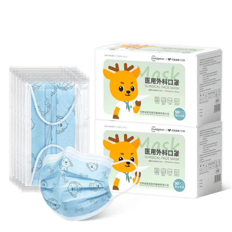 超亚儿童医用外科口罩一次性医疗小孩8-12岁专用3到6上学独立包装