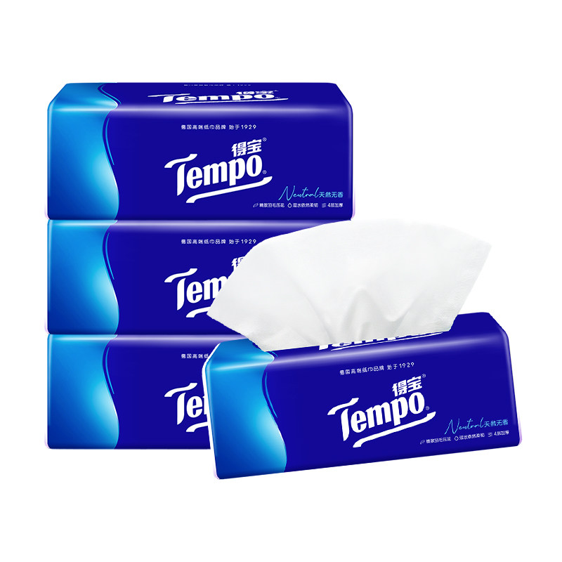 Tempo得宝纸巾天然无香软抽纸德宝抽纸餐巾纸4层加厚3包实惠装wrt