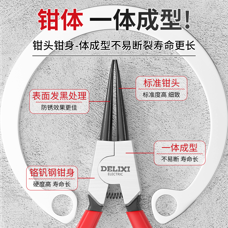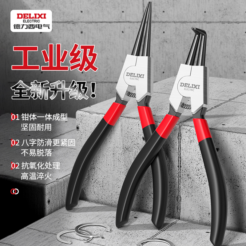 德力西电气多功能扩张钳挡圈钳套装工具内外两用工业级卡簧钳子