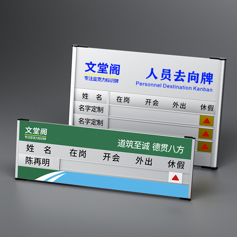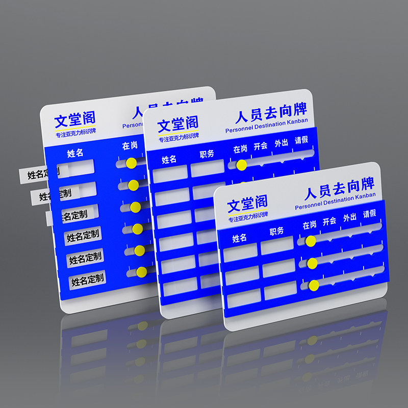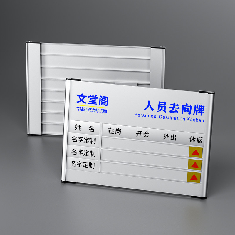亚克力工作人员去向牌定制员工岗位牌公司科室部门公告栏贴纸办公室标识牌在岗状态牌开会外出提示牌子可更换