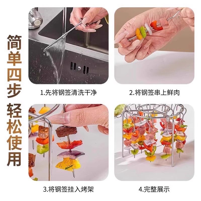 空气炸锅烧烤架立式烧烤架烤箱不锈钢圆形烤串烤肉吊挂专用立式架