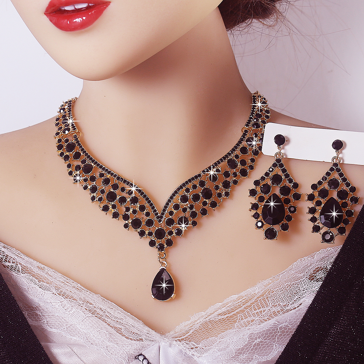 欧美水晶项链耳环首饰套装合金镶钻饰品配饰饰品舞会表演超闪