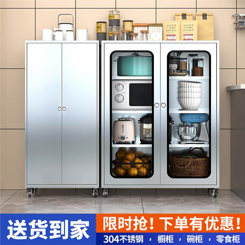304不锈钢餐边柜厨房储物柜碗柜家用收纳柜带门多斗茶水柜可定制