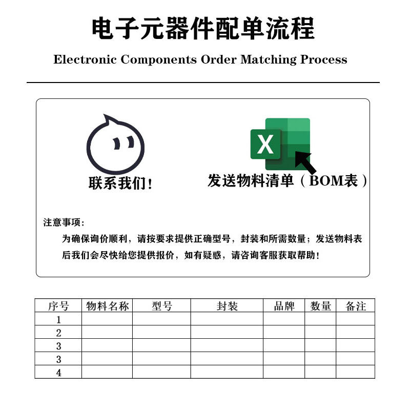 电子元器件配单BOM表一站式配单报价电子芯片IC采购 集成电路配单