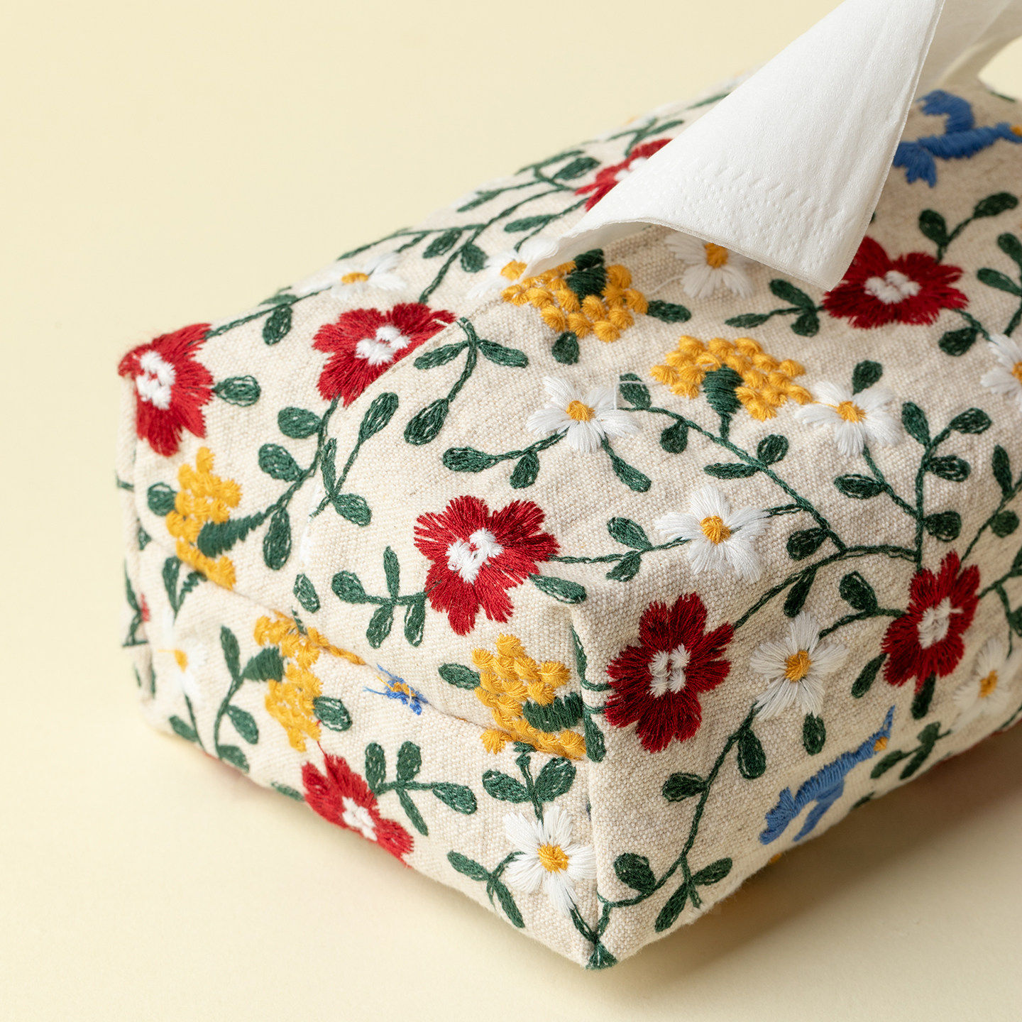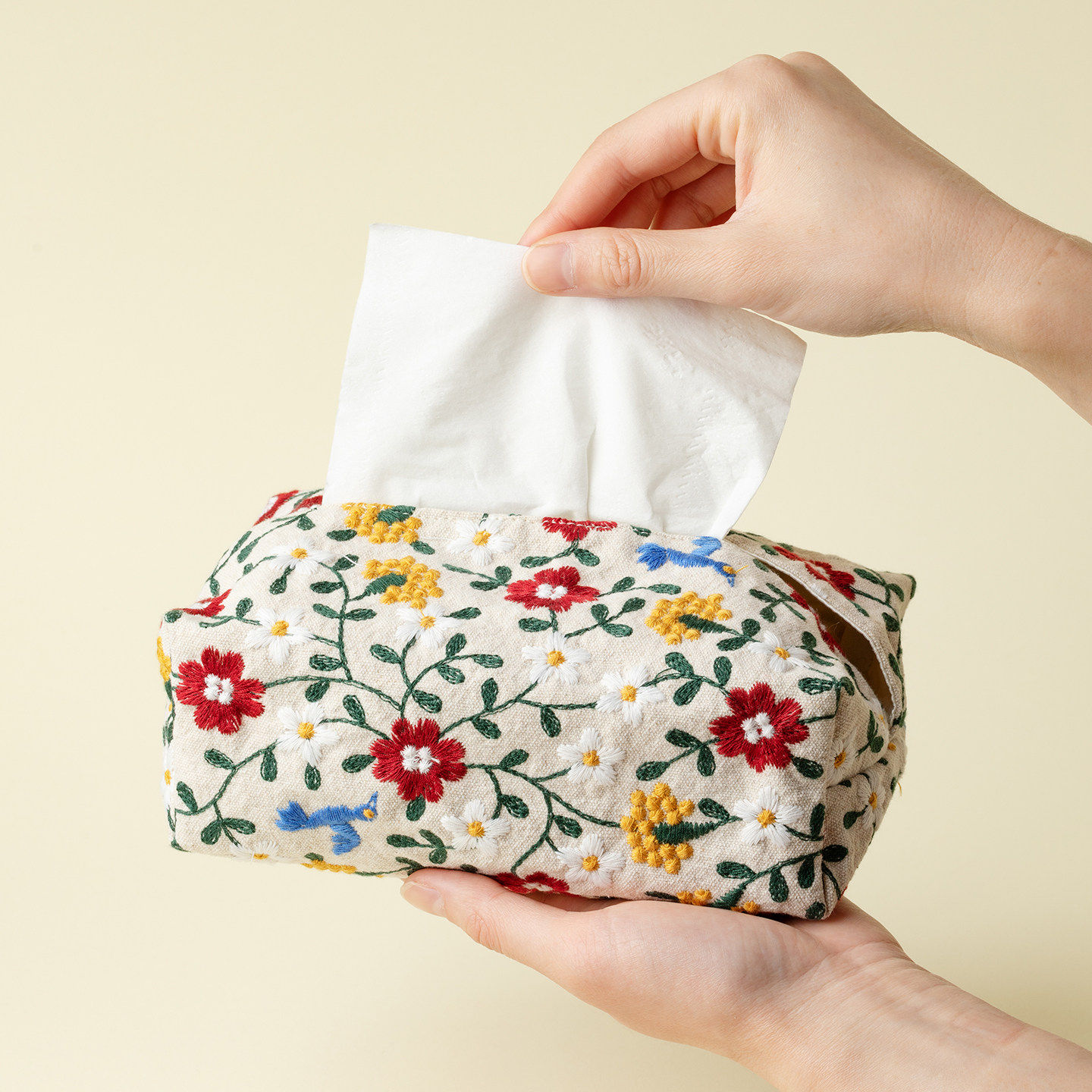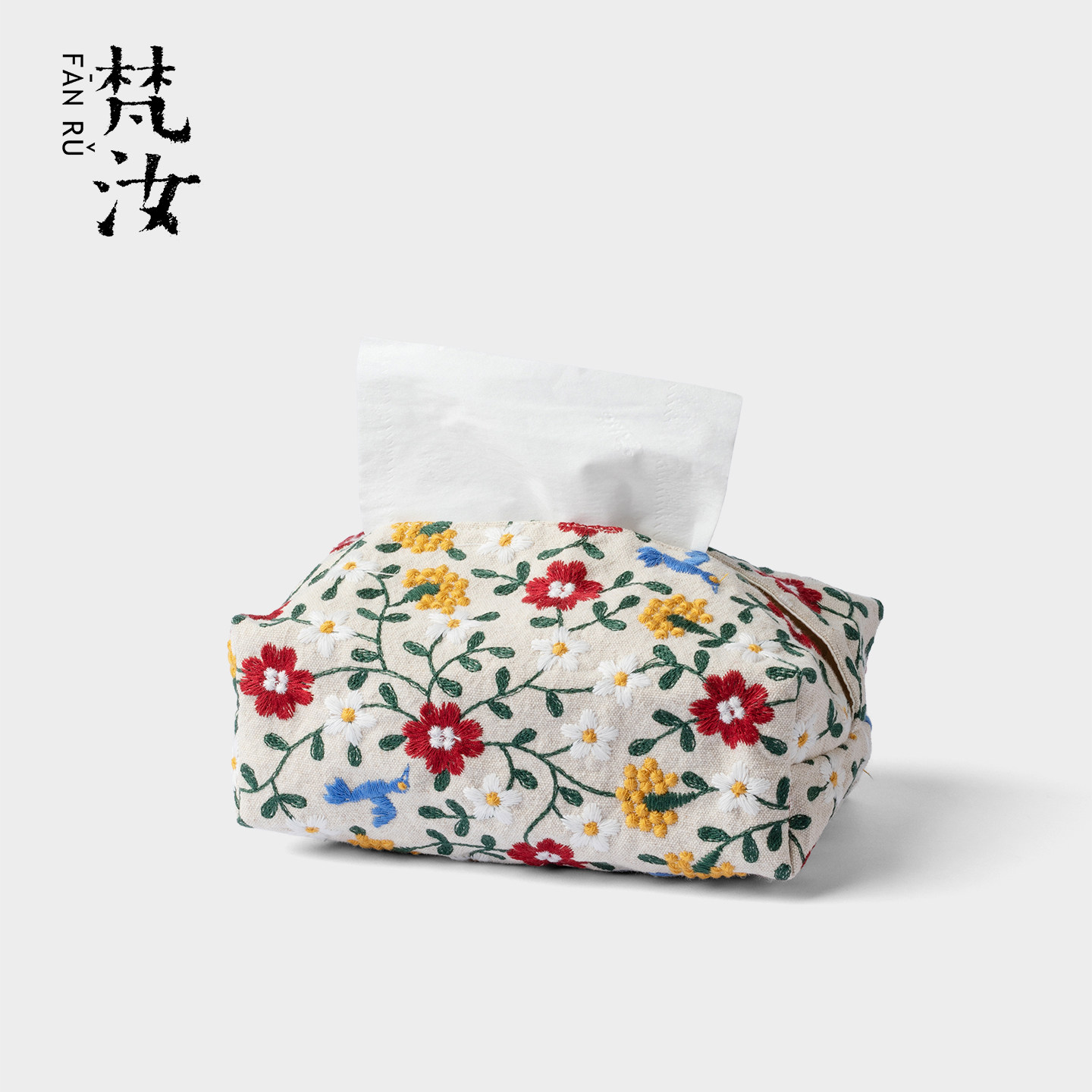 梵汝刺子绣春日碎花纸巾盒小清新手工布艺纸巾袋收纳盒客厅抽纸盒