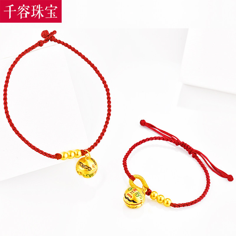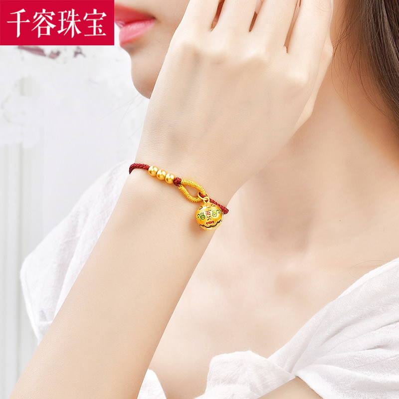 3D硬金黄金铃铛脚链999足金驱魔铃编绳脚饰女古法转运珠纯金新款