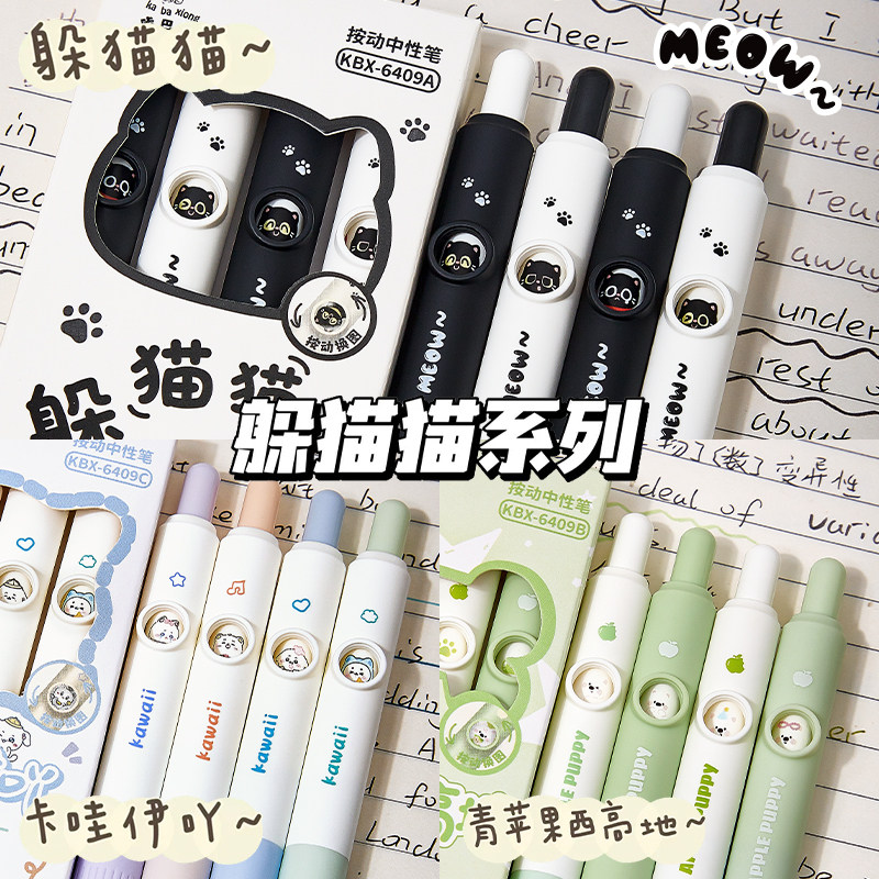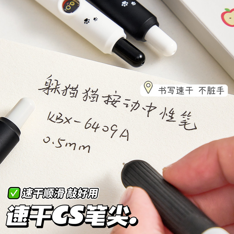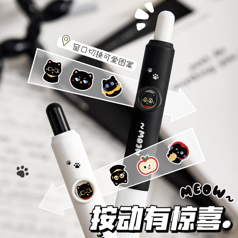 可爱小猫趣味按动中性笔会变脸的笔ins风创意刷题笔小学生CS头黑色口袋笔简约速干顺滑表情笔初中生考试专用