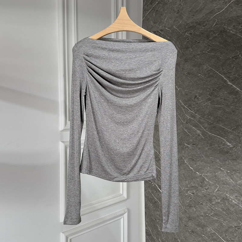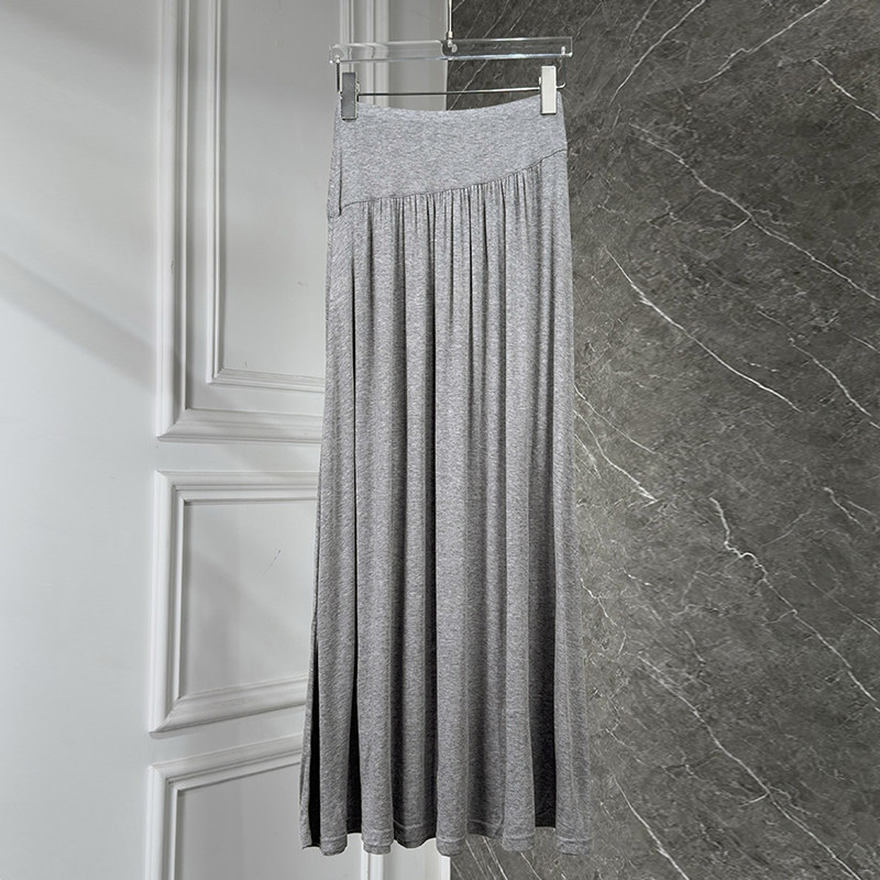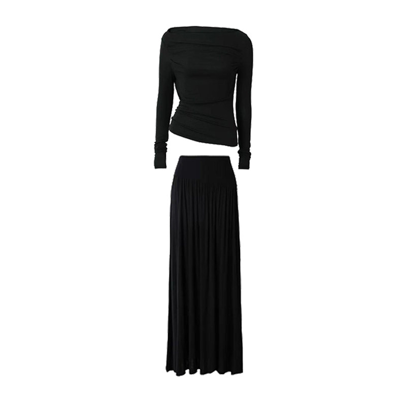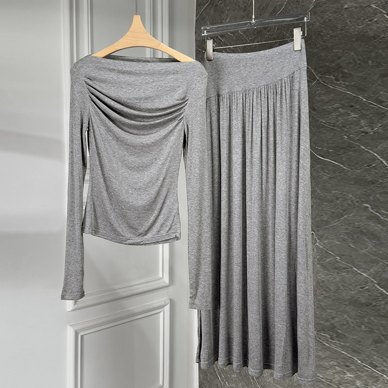 早春重磅天丝羊毛一字肩法式垂感显瘦垂感长袖针织衫+半身裙套装
