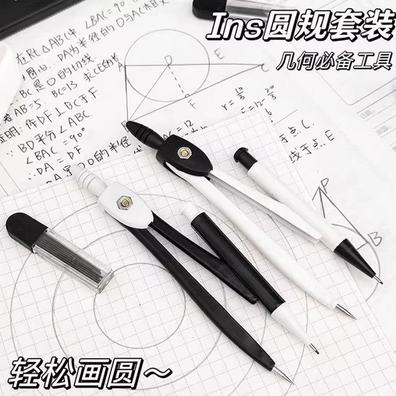 金属圆规小学生专用初中生考试几何教学绘图文具用品数学文具套装金属不锈钢圆规套装学生用初中生套尺作图