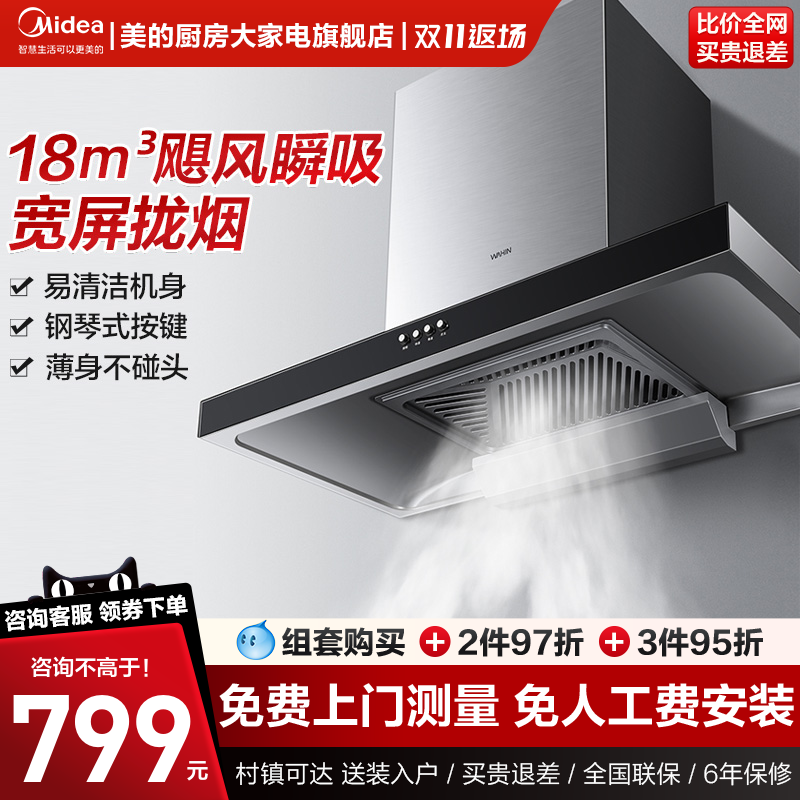 美的出品华凌H4抽油烟机家用厨房大吸力顶吸式脱排烟机官方旗舰店