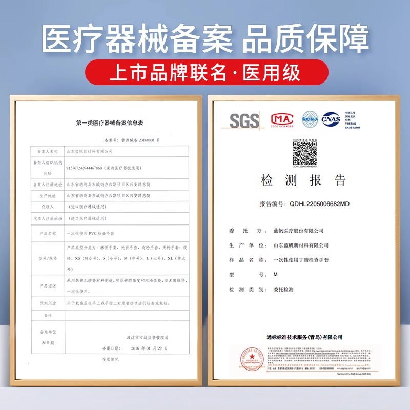 艾享医用丁腈手套一次性加厚医疗外科手术检查食品级专用乳胶橡胶