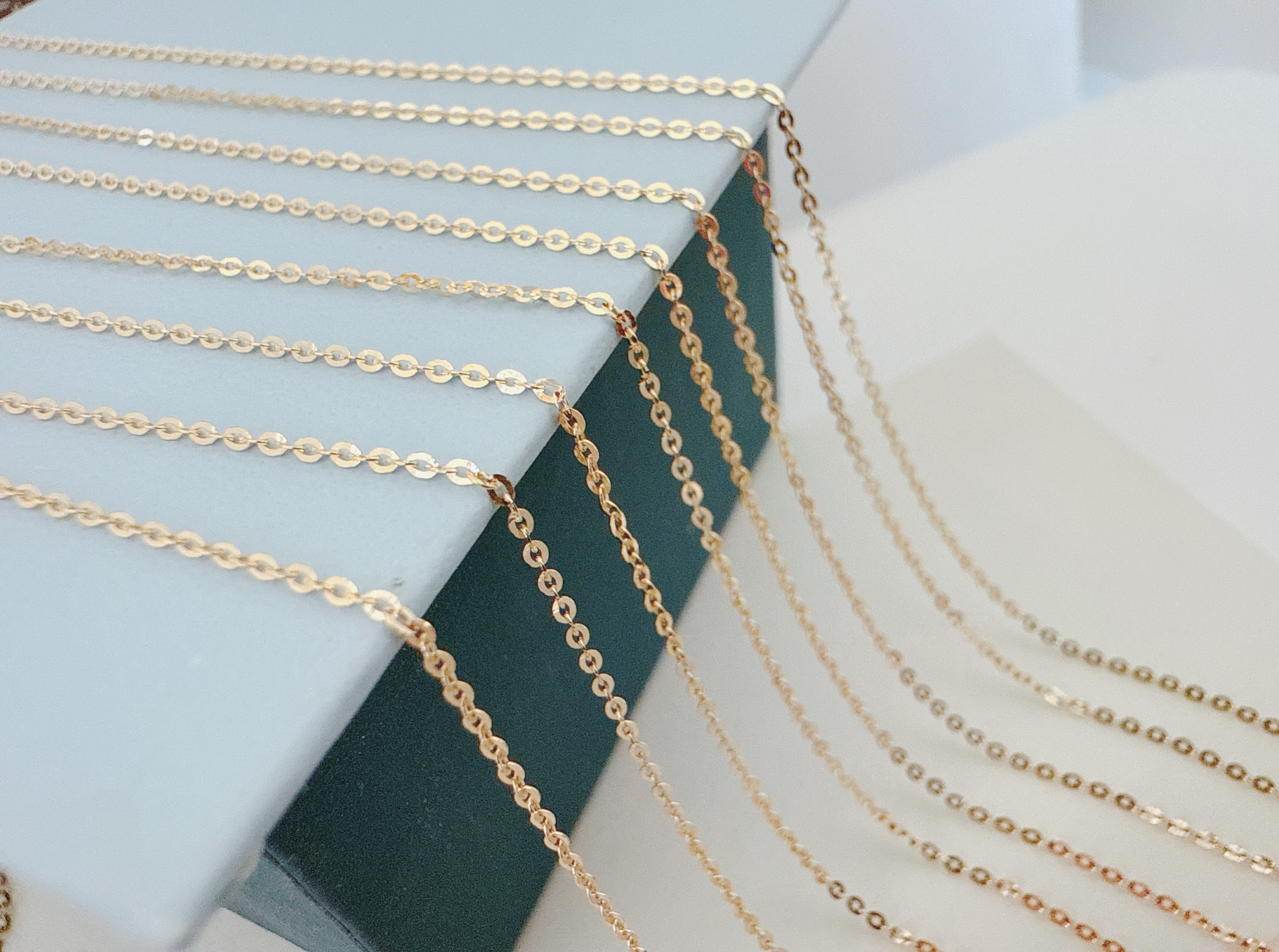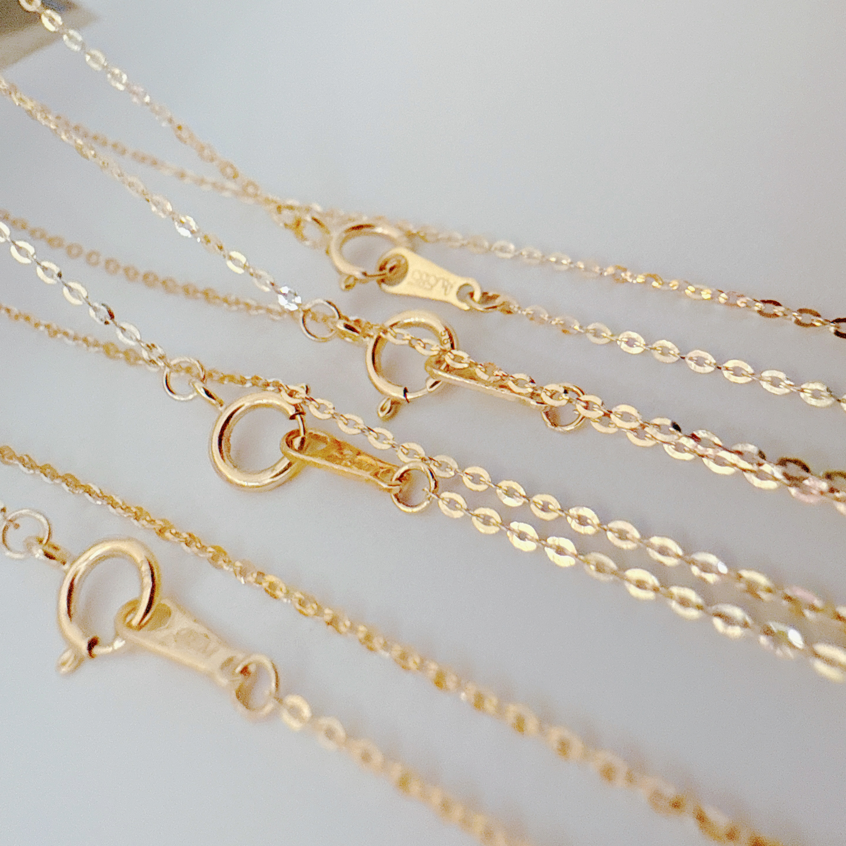 通体14K纯金项链 裸链 黄金锁骨链不褪色K金链子真金颈饰