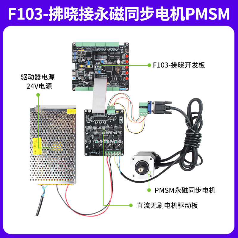 野火PMSM永磁同步电机 FOC5.44控制 PID闭环 带编码器 转速4000R