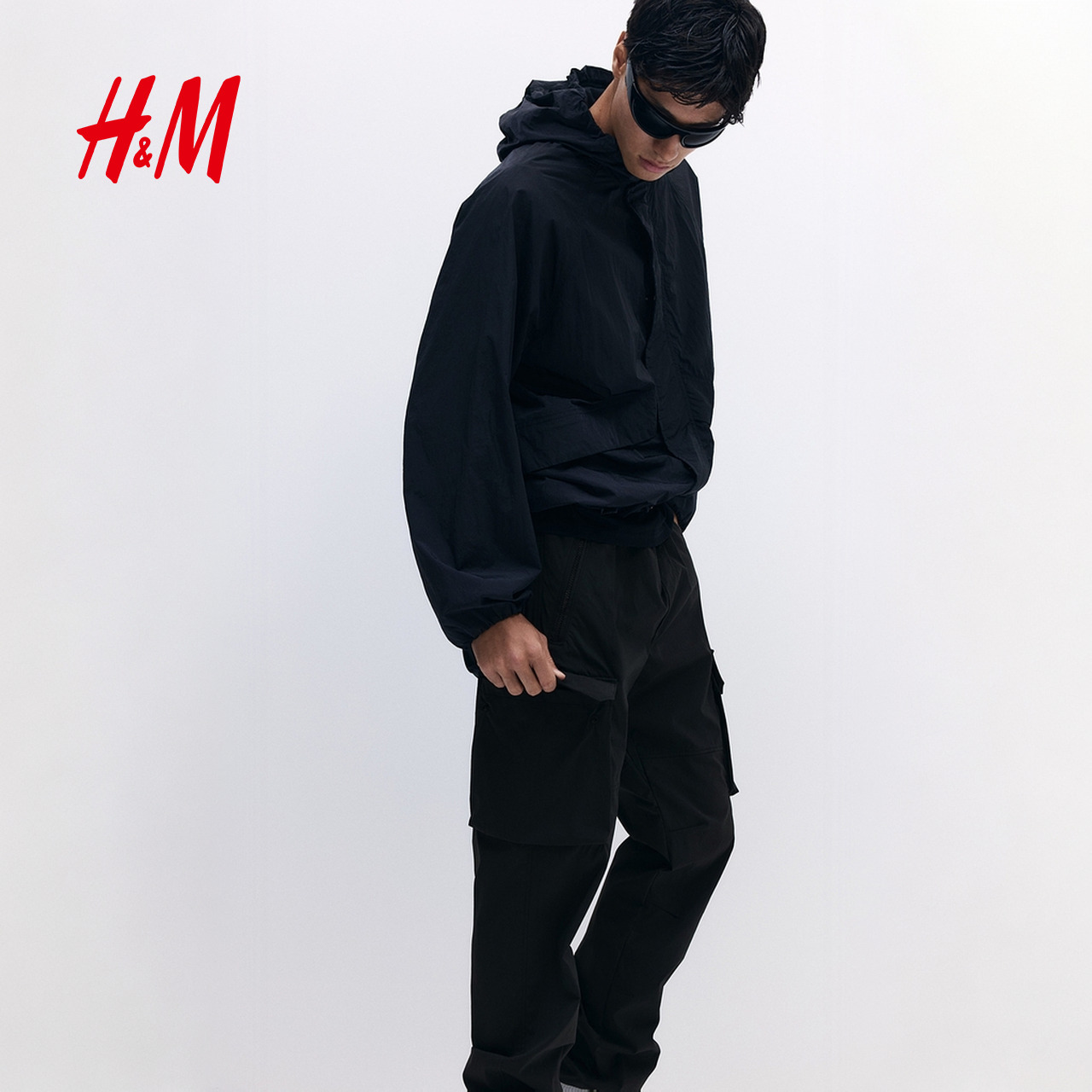 HM男装休闲裤2025秋季新款尼龙松紧腰美式时尚舒适工装裤1288986