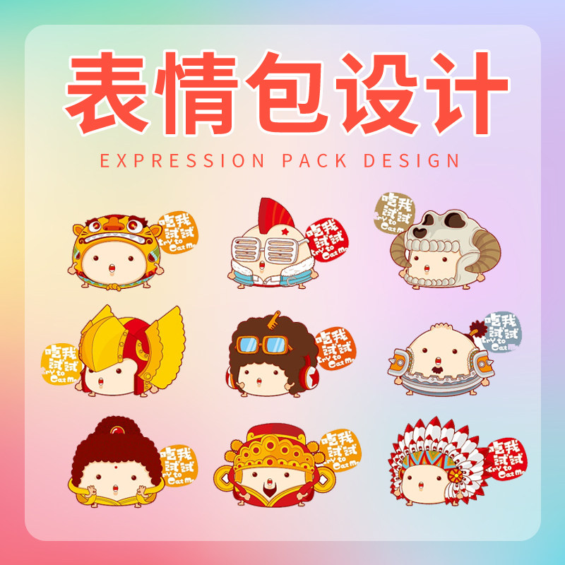 吉祥物ip虚拟主播形象设计三视图ai代画代出图表情包制作插画手绘