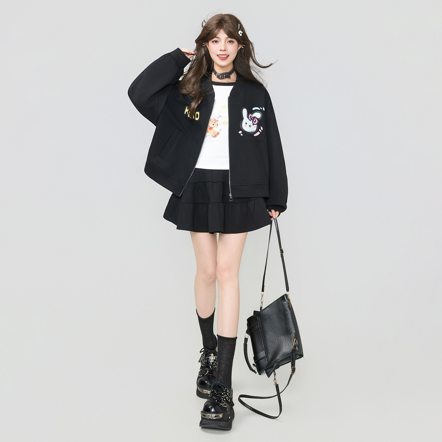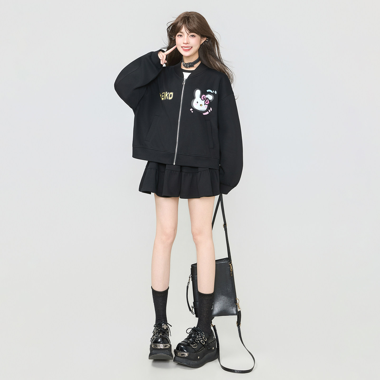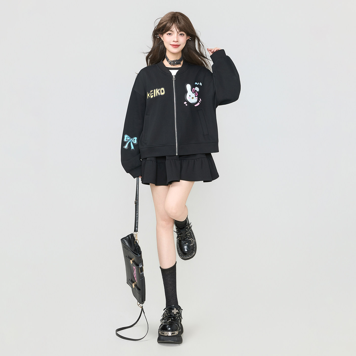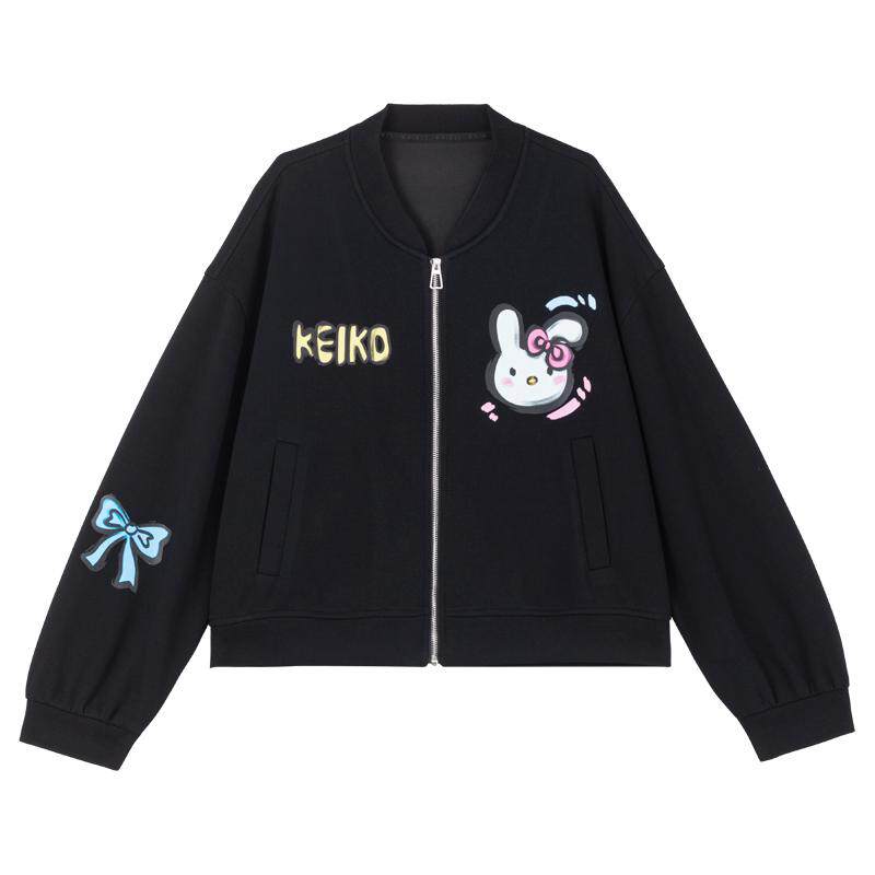 KEIKO 甜酷黑色拉链外套棒球服女2026春季轻运动休闲宽松卫衣