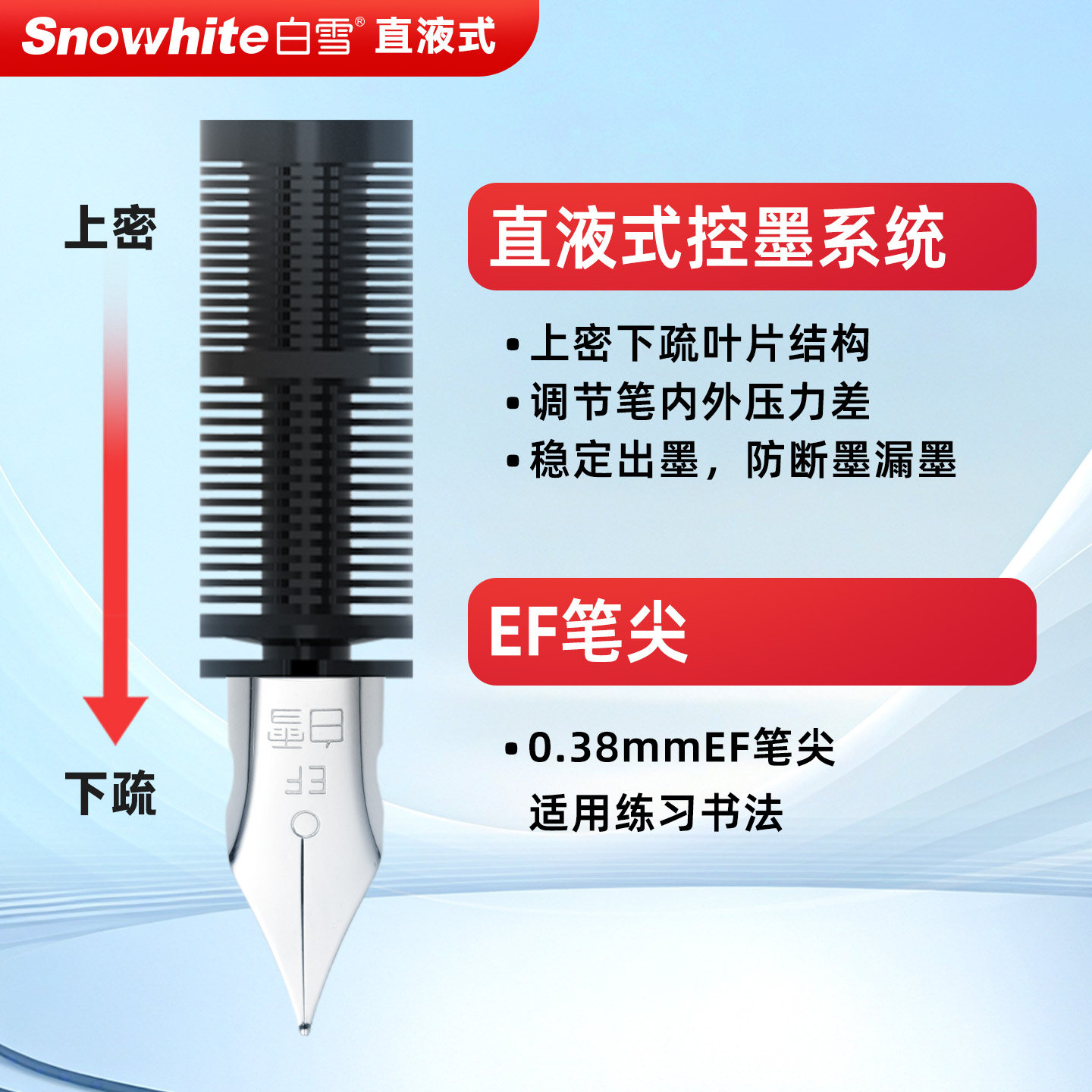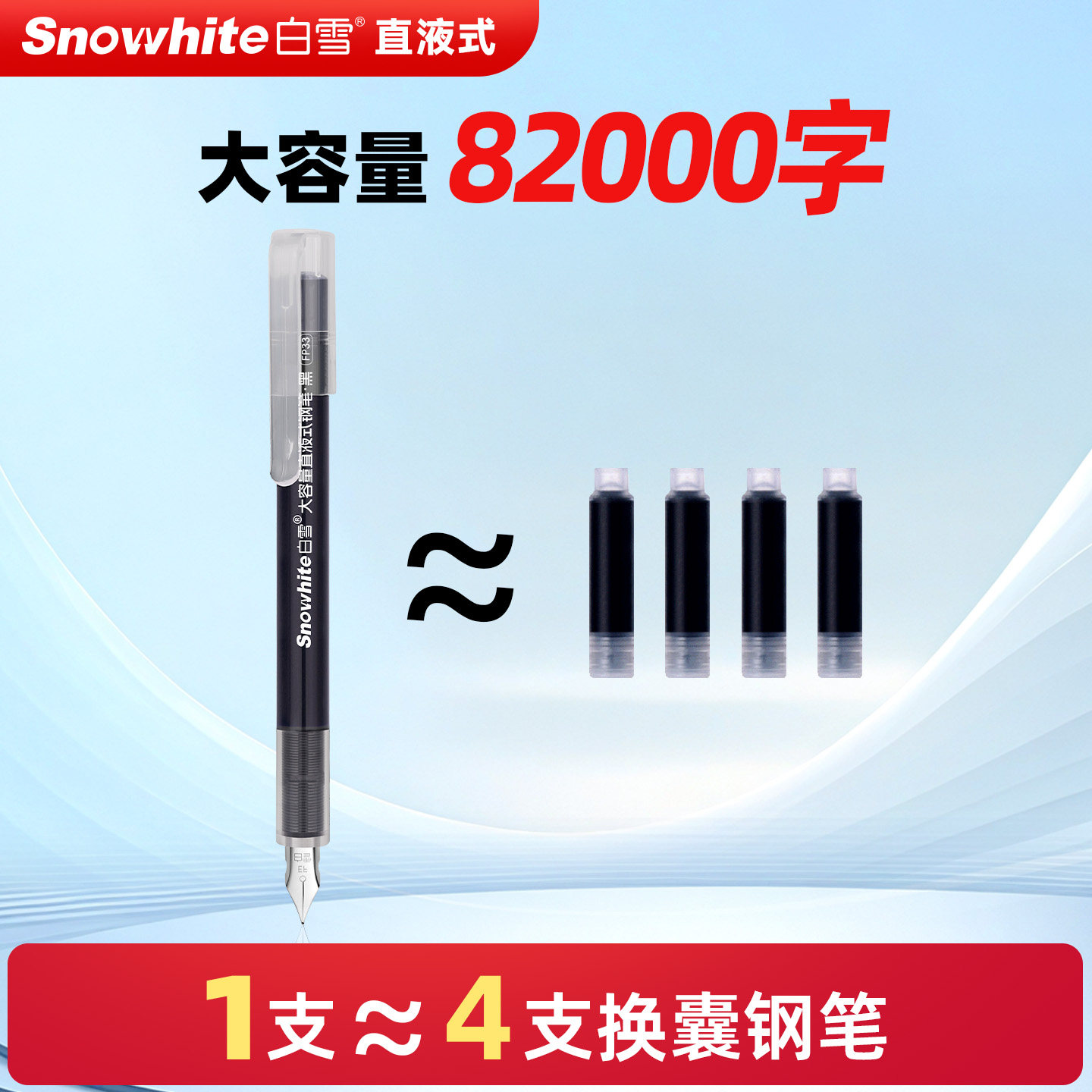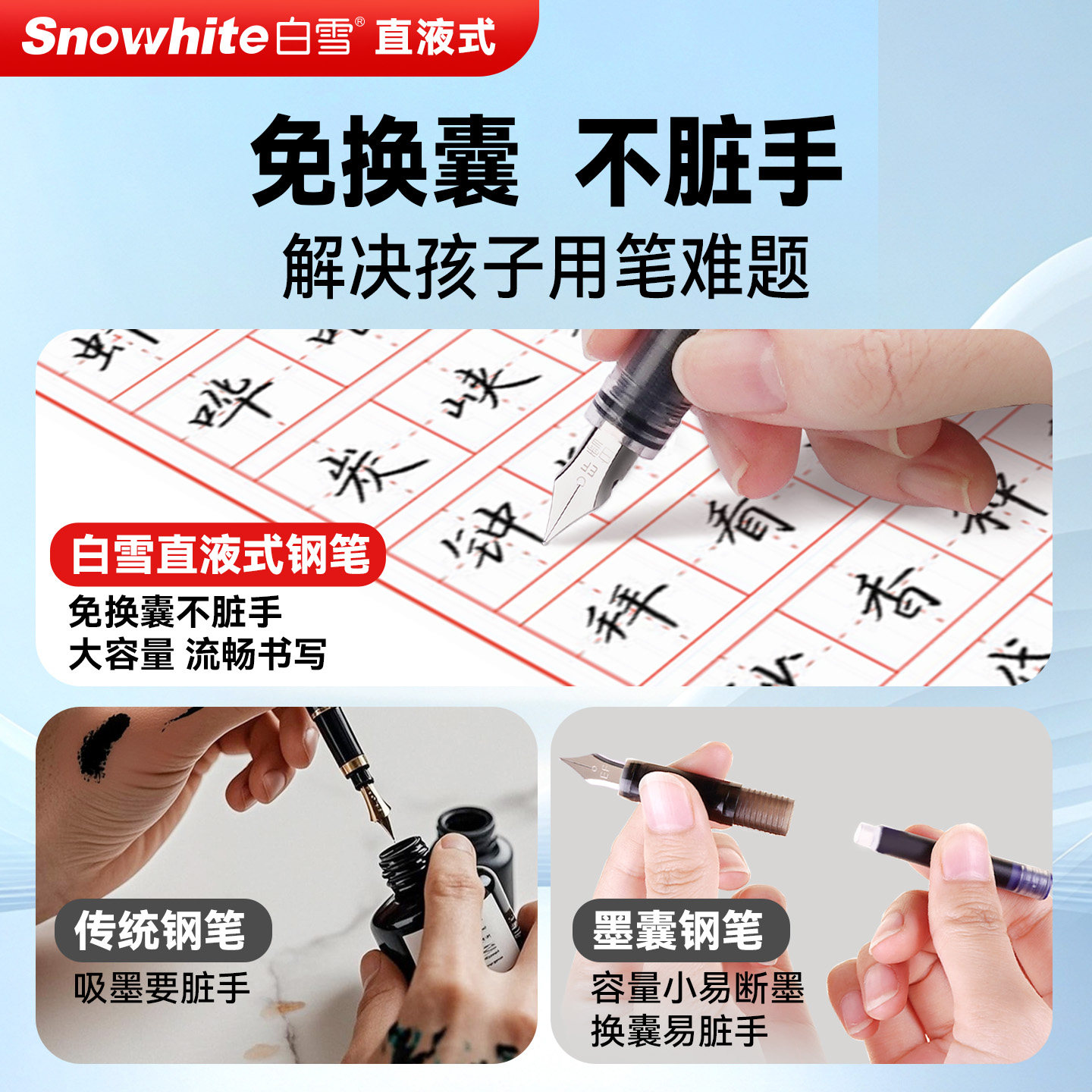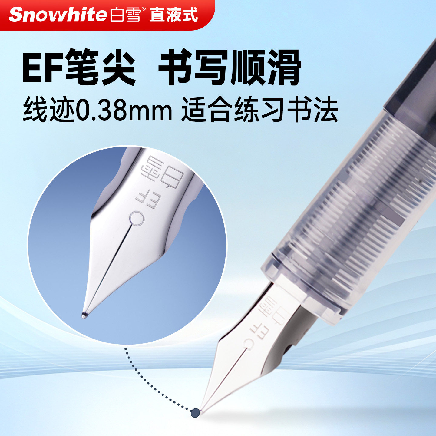 白雪直液式钢笔学生专用三年级练字免换墨囊一次性钢笔EF尖速干黑色纯蓝小清新小学生女生四年级儿童FP33