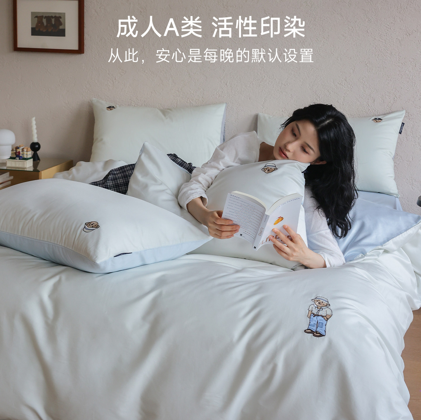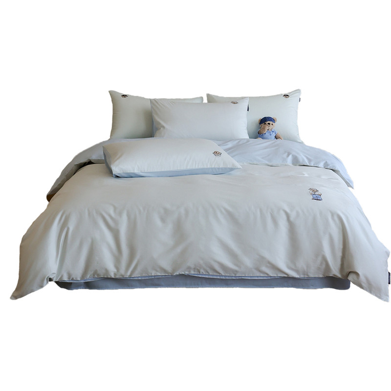 TeenieWeenie蓝色小熊刺绣全棉纯棉床品四件套简约北欧风床上用品
