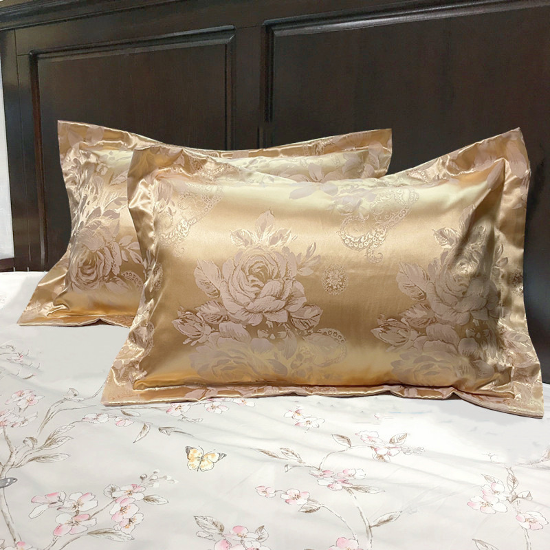 欧式贡缎提花枕套一对装全棉乳胶枕枕套枕头套枕套两只不含枕芯