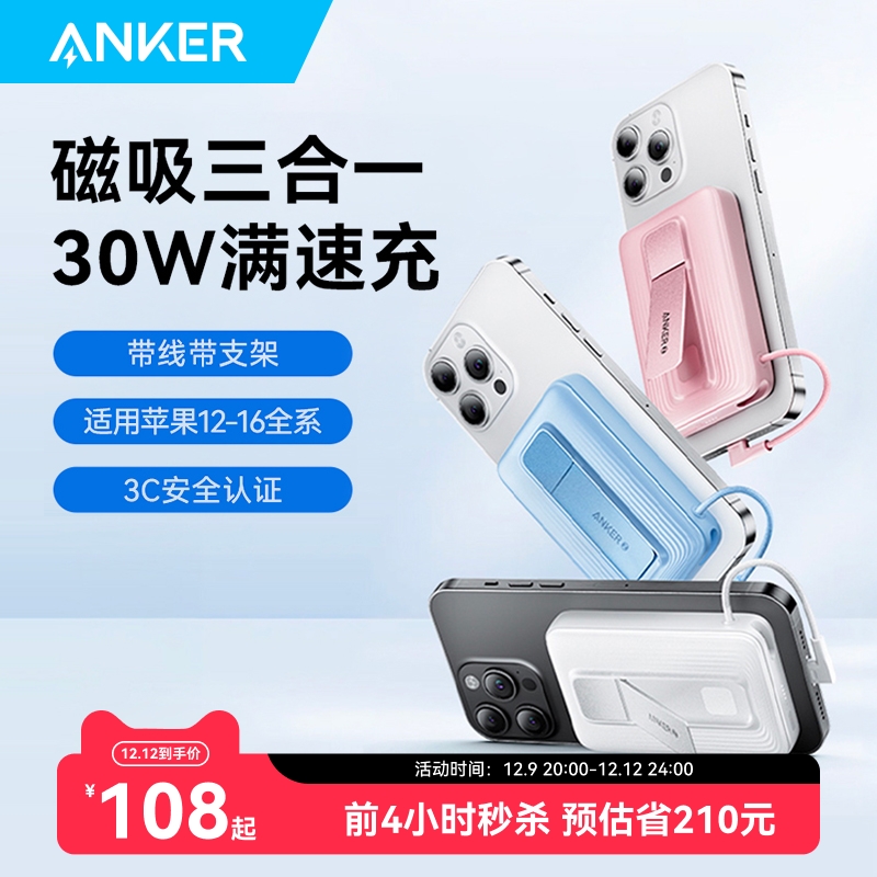 Anker安克2024新款充电宝磁吸款超薄小巧便携无线快充适用iphone16苹果15magsafe移动电源正品官方飞机可携带